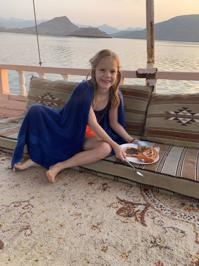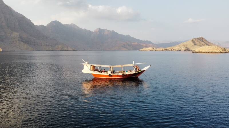 We did a private overnight Dhow cruise from Khasab - Musandam (for one night). Musandam is an exclave totally surrounded by UAE, with the Strait of Hormuz (which it shares with Iran) and the Gulf of Oman forming Musandam's coastal boundaries. The cruise was really amazing, with lots of activities such as snorkeling, swimming, fishing, visiting Telegraph and Seebi Island, and our favorite part, watching the dolphins, and there were so many of them, just beautiful.