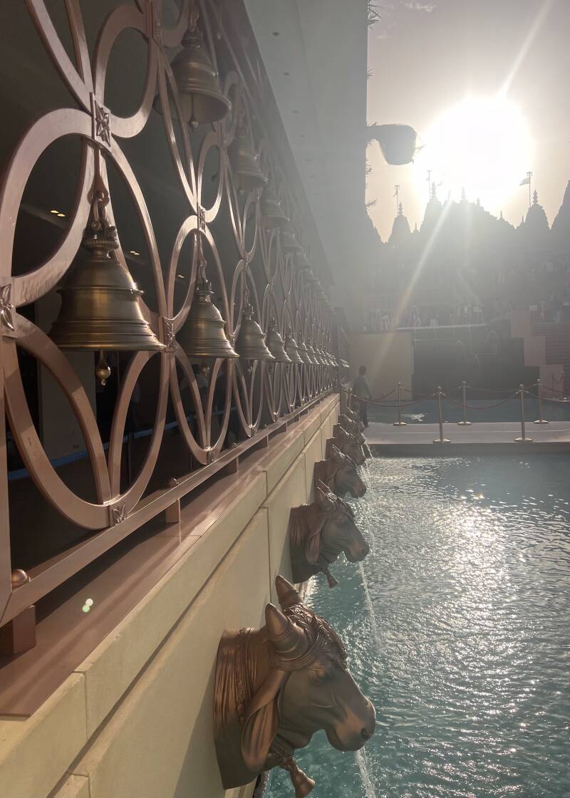 The temple is an architectural marvel, a testament to the rich Hindu culture. The mandir (33 meters high, 80 meters long and 55 meters wide) is made of pink sandstone from northern Rajasthan and marble from Italy. Every facet of the Mandir reflects meticulous craftsmanship and attention to detail, from the majestic spiers that reach towards the sky to the ornate carvings that adorn the walls. Really beautiful!