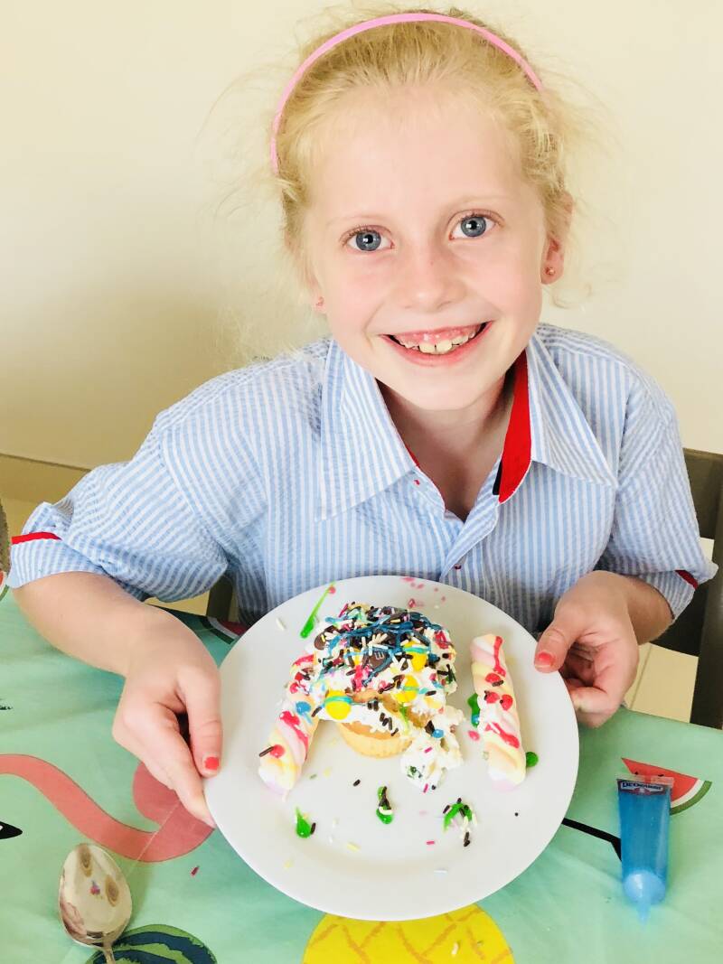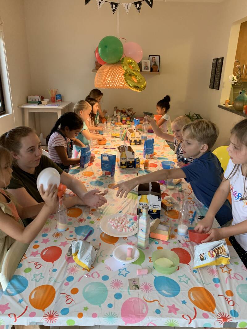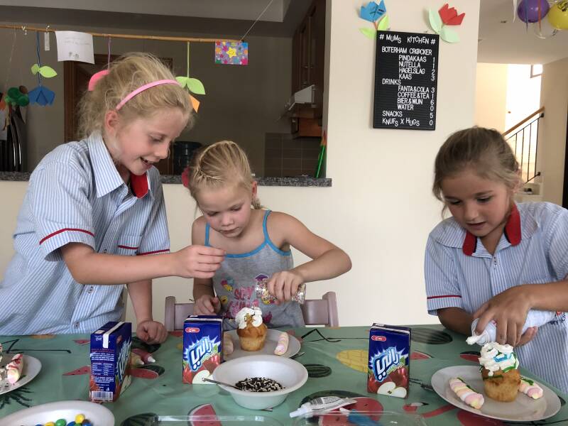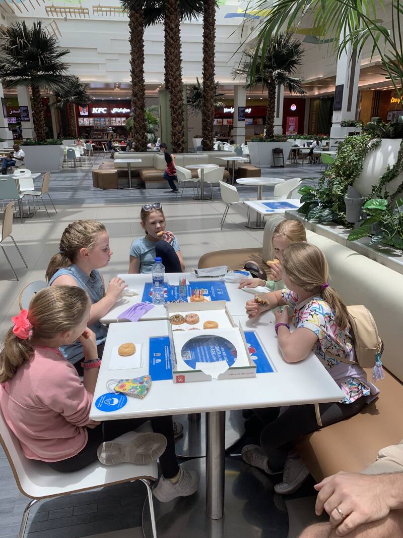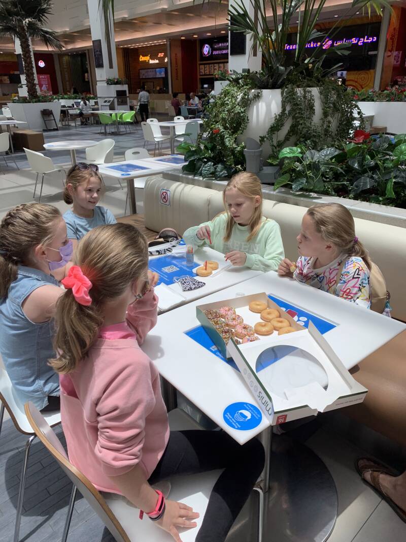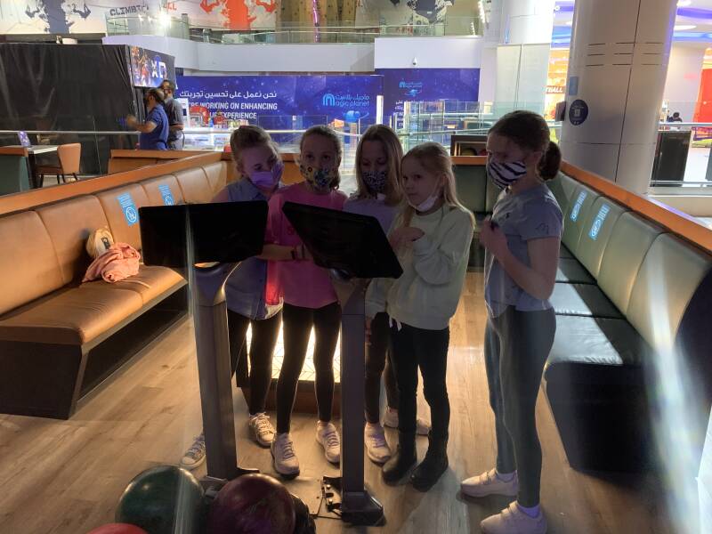 Small party with five girls; they went for a donut, then bowling, had lunch, did the skyline, and finished at Hans & Gretel where they filled their own candy bag! (all activities @MirdiffMall)