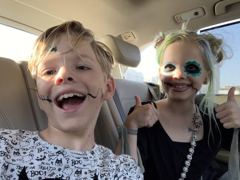 Lieke as a witch, Dinand as a mummy and Sandra as the horror bride...