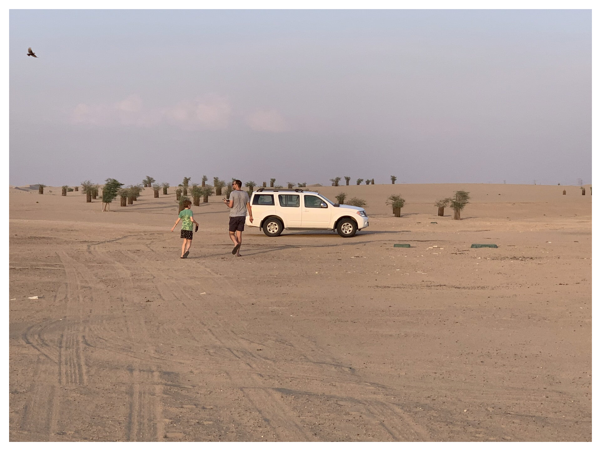 Recently, we discovered a new spot out in the desert. You head in the direction of Bab Al Shams Resort, and from there, turn off-road and follow the coordinates into the dunes. After a bit of driving through the sand, you’ll come across this charming little lake, tucked away in the middle of nowhere.