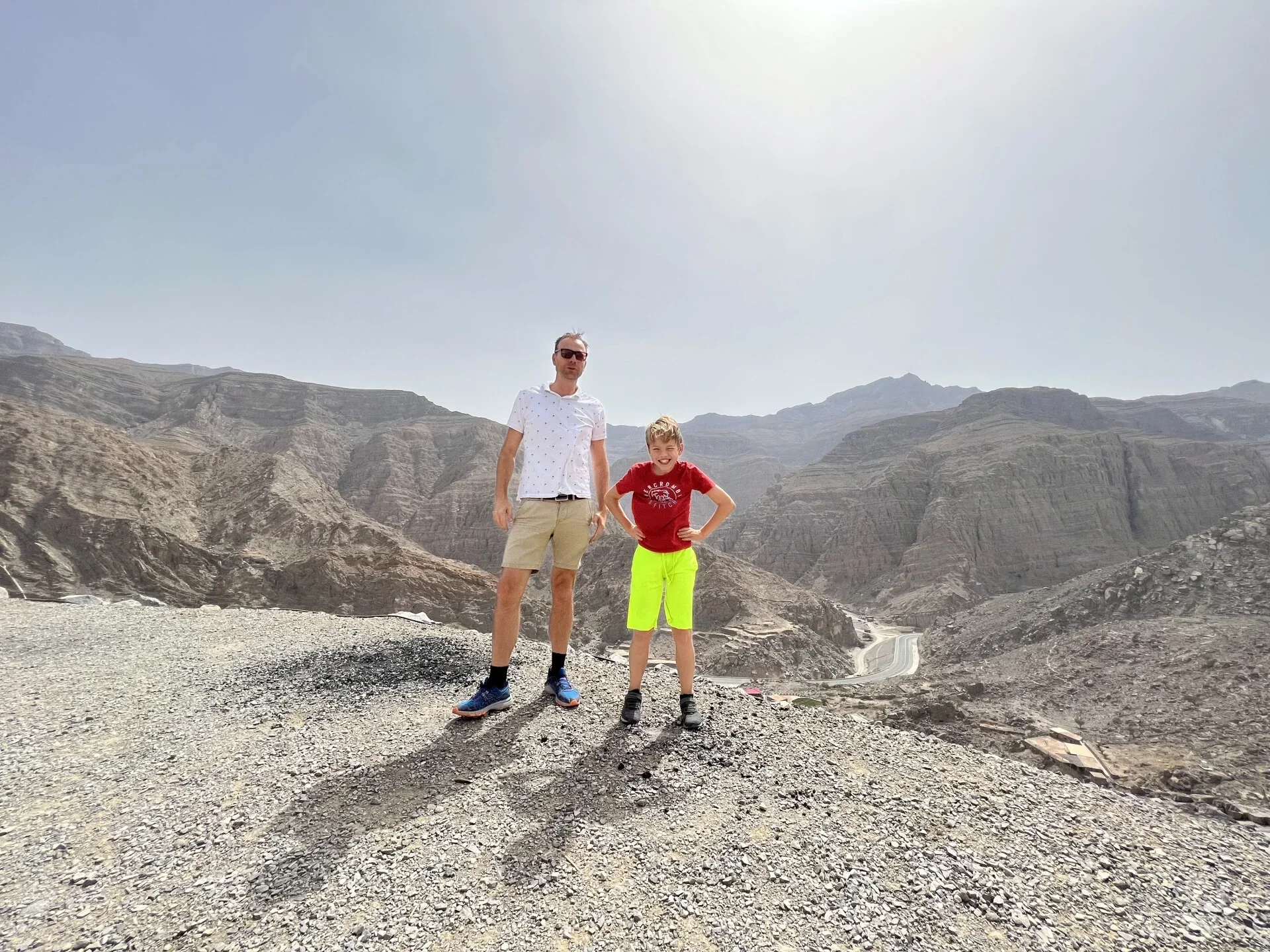 The Jebel Jais mountain peak is part of the spectacular Hajar mountains. The range (view) extends from Ras Al Khaimah on the eastern side of the United Arab Emirates to the Musandam Peninsula on the northeastern side of Oman. The summit has an elevation of 1,934m; it is the highest point of the UAE.