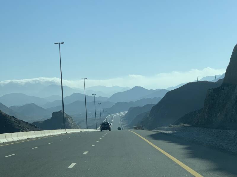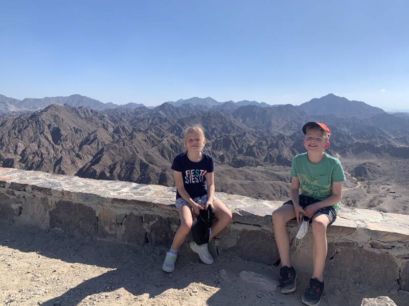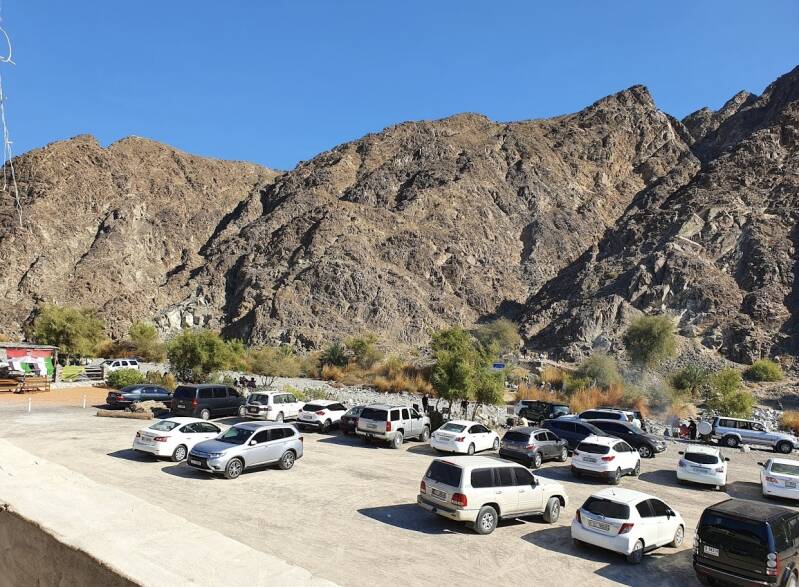 Shawka means 'powerful wadi'. It is a seasonal watercourse located at the Showka Dam in the Hajar Mountains of Ras Al Khaimah. At the time we were there, there was not much water in the Wadi, but nevertheless, the setting was beautiful and adventurous. We climbed the stairs to the highest point (421 mtr) and then descended over the ridge of the mountain back to the starting point. After 2-2,5 hours, we reached the car again and we had a drink at one of the food stalls. It was an hour drive back to Dubai.