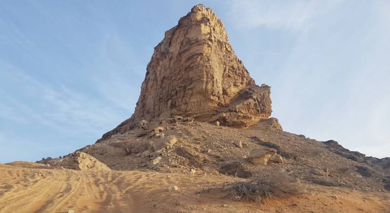 We have often driven the Sharjah-Kalba highway towards Fujairah, and each time we pass the impressive 'Fossil Rock'. It is a jagged rock, or better a big limestone ridge, that marks the beginning of the mountainous region, The Hajar Mountains, a mountain range that extend for about 700 kilometers from the Musandam Peninsula through to the east coast of Oman. These mountains were formed 70 millions years ago by volcanic activity and they were standing about 2,000 meters above sea level. Some parts of the mountains were partly covered by the sea, including Fossil Rock, and therefore many preserved marine invertebrate fossils can be fount on its limestone slopes. Today we were going to conquer this giant! We did this hike with the two of us, as the kids had other plans for the day ;-) It was a heavy hike (we were exhausted when we came back to the car), but we beat it and it was very satisfying. Fossil You Rock!!! (btw I forgot my cap, so I had to wear Lieke's one, that she left in the car, so I look a bit silly on the pics ;-( )