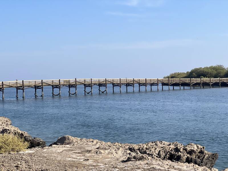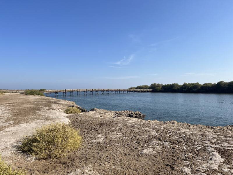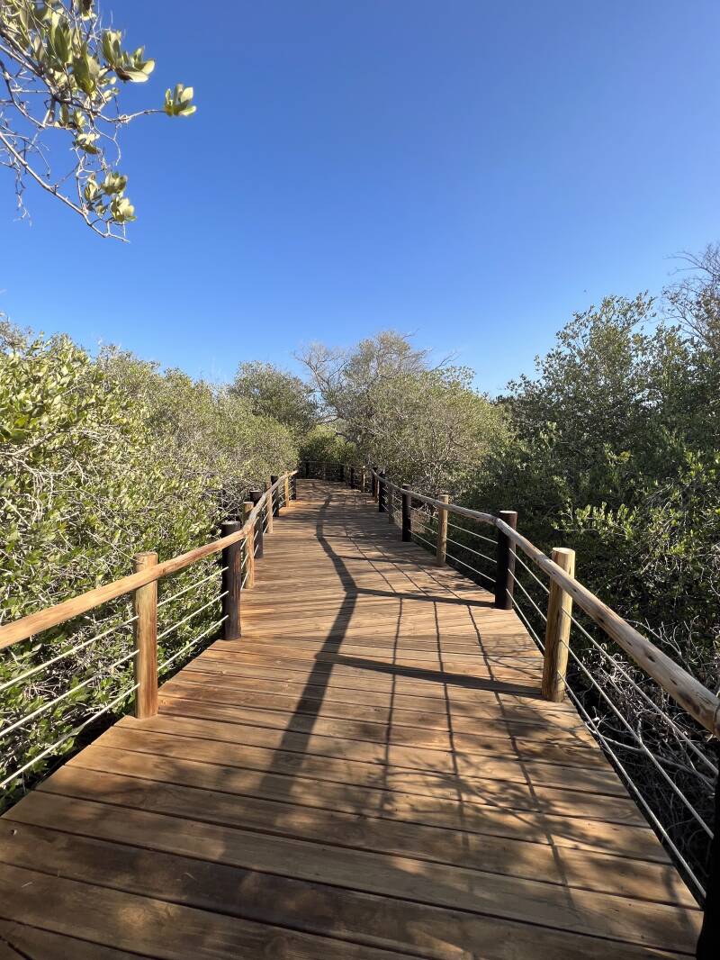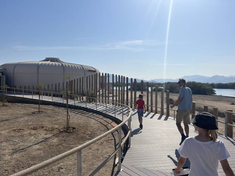 The Mangrove Centre is opened its doors in April 2021, after nearly a decade of restoration and conservation. The new mangrove centre is part of Sharjah’s efforts to support environmental biodiversity and preserve local wildlife. The park is home to remarkable mangrove landscape that originated here on the coast off Kalba, where fresh and salt water is mixed in the inland streams and lakes. Ebb and flow determine this specific type of nature, so that the mangrove is sometimes dry and sometimes (partly) under water. Beautiful park and indoor visitors centre.