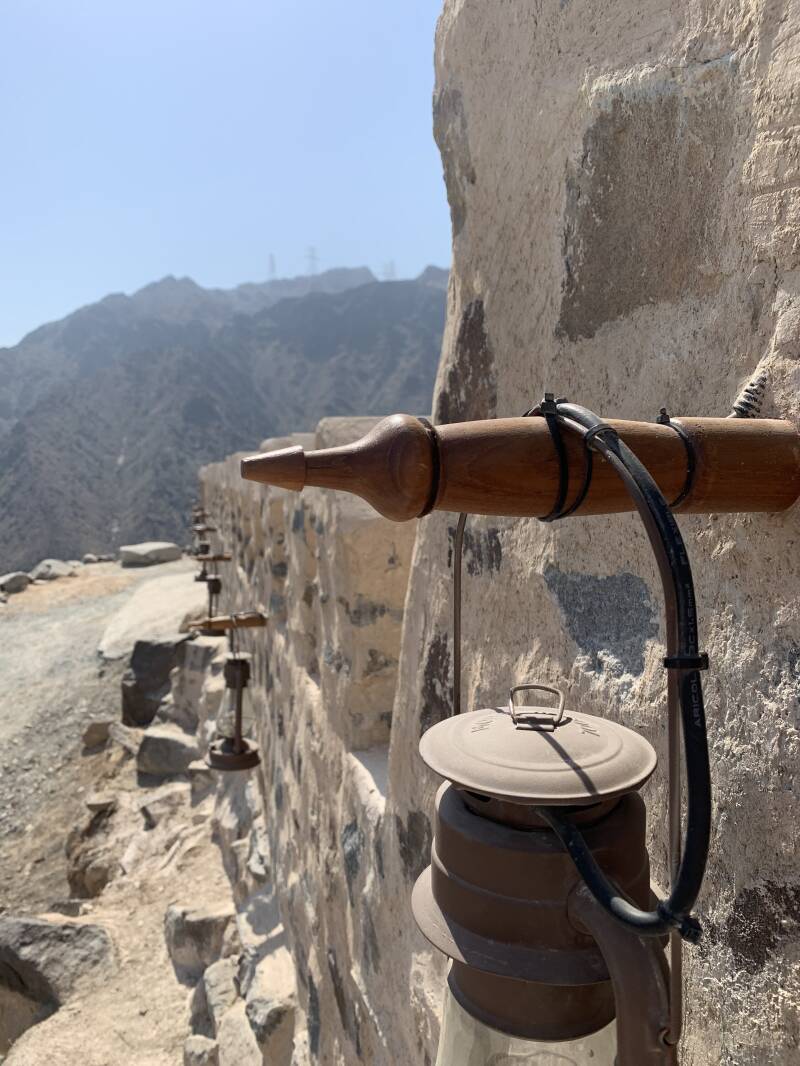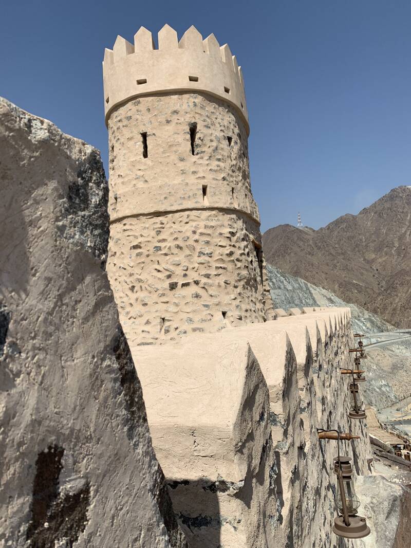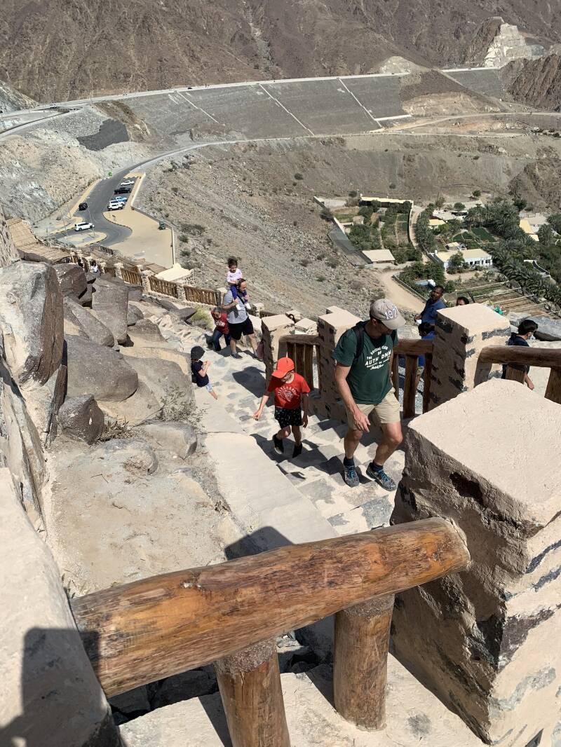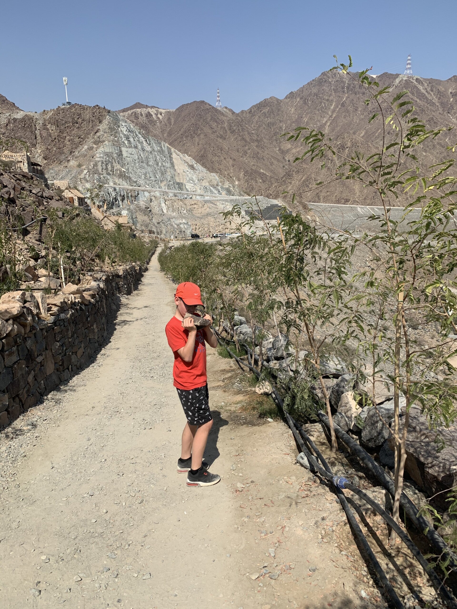 With our bellies full, we crossed the dam for the Al Rafisah Dam Walk (it is called "The Walk"), which ends at a viewing platform in Najd Al Maqsar historical Village. This is one of the most important ancient human communities in Wadi Washi within the historical city of Khorfakkan. The village is reconstructed and restored for tourism goals, there aren't people living here anymore. The village consists of 13 old houses (approx. 100 old), but they even found rocks engraved with drawings of camels and horses dating back to 2000 years BC in this area. There is also historical evidence of the exodus of many people from Khorfakkan to Wadi Shai, especially Najd Al Maqsar settlement, during the Medieval Period, at the time of the Portuguese colonization of the region to seek shelter in its impenetrable mountains.