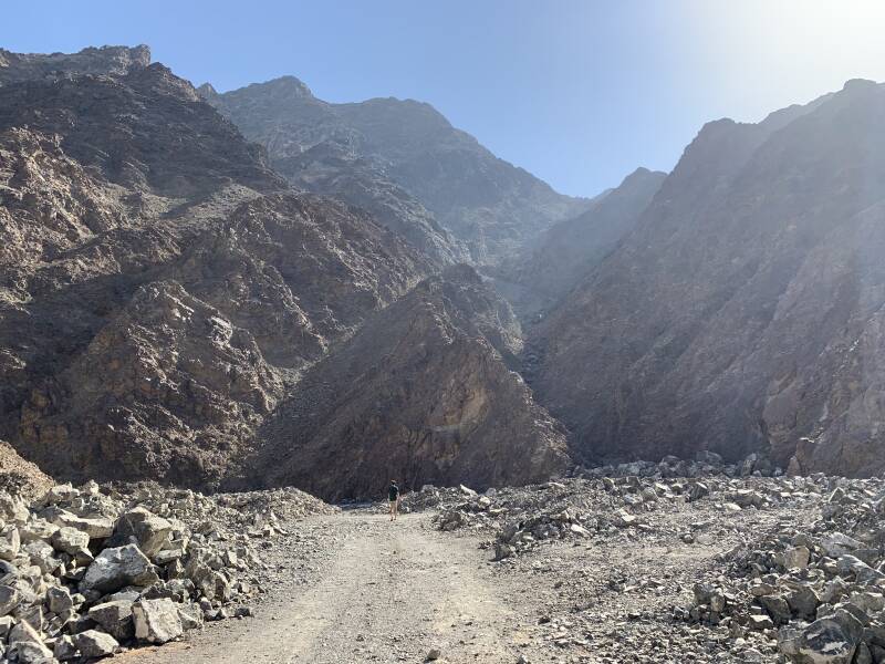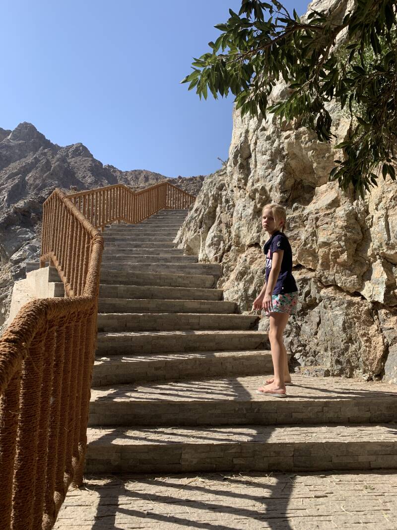 We visit Wadi Shees as the second part of the day trip we did this day. First we visited Rafisah Dam which is 14 km up to the North. Wadi Shees is a very popular spot in the UAE, lots of people spent a day at the Shees park, which is therefore very busy (we did not do the park). We drove a bit further to the starting point of the Wadi Shees Nature trail. This walk goes along an old village, the old water transportation system, some plantations, terraces gardens and all kind of biodiversity. The highest temperature ever measured there is 32 degrees, so it is a very cool place in UAE (because of all vegetation). Nice and educational. The trail ended on the main road, which, at that point, was only about 300 meters form the Oman Border.