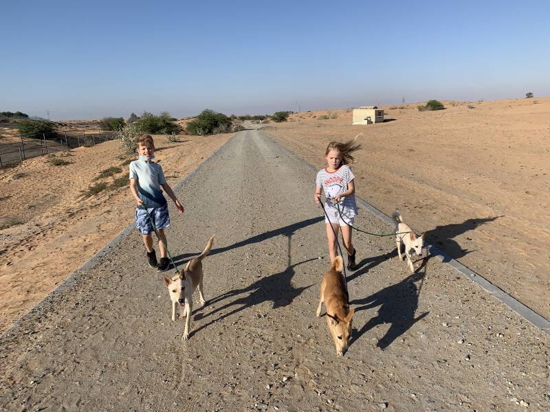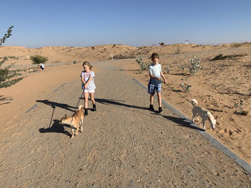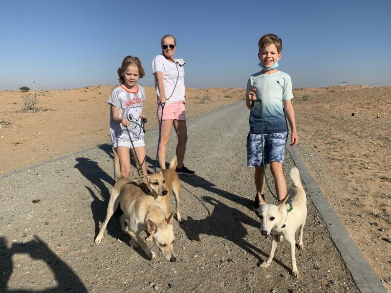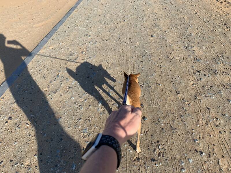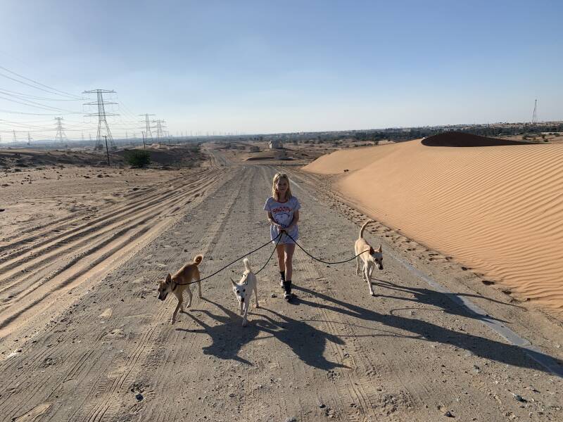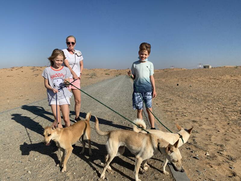 It is very sad to see so many dogs being discarded in the UAE. The Stray Dog Center is a private animal shelter, non-profit, that was established in 2013 and relies on public support to operate. Many stray dogs are sheltered here and treated in a human way. As truly dog lovers, we decided to sponsor the center by booking a dog walk. We had to pay 150 dirhams (it is about 35 euro) for walking with three dogs for one hour. The money is used for dog food, equipment, medical treatment, etc.. And the dogs get the opportunity to go outside for a walk, so it works both ways. Despite the misery behind this initiative, we really enjoyed this day with mixed feelings.