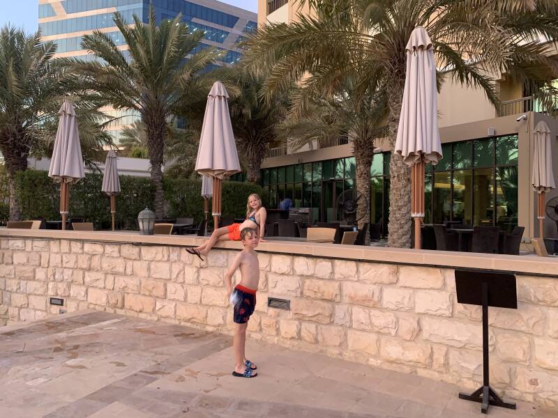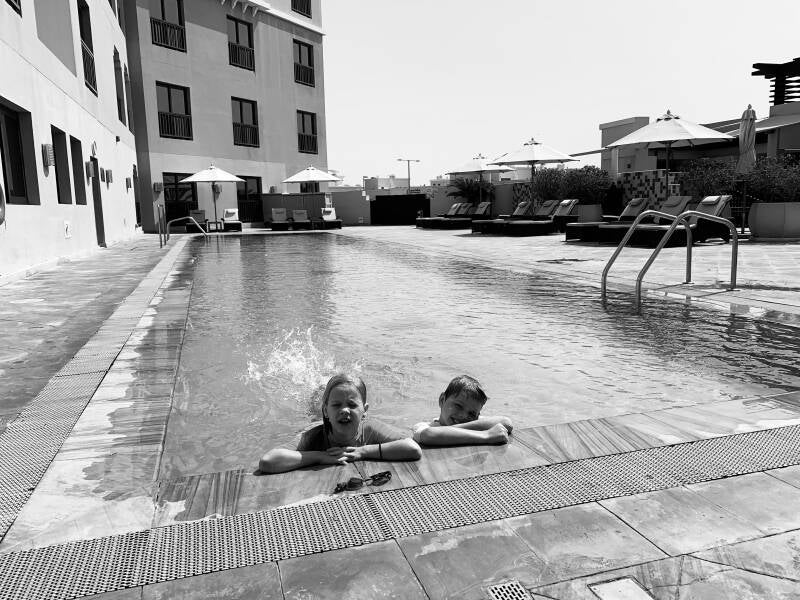 As Valentijn has to work in Abu Dhabi during the week, we spent time together in the Traders Hotel Qaryat Al Beri during the last week of the children's summer-break. The temperature was still 40+ degrees, so we spent most time in de pool or at the beach. Below you will find some photo's of our stay.