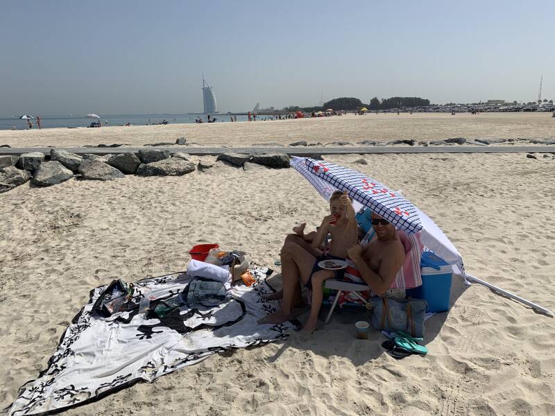 Black Beach is a public beach which you can access by car. The nice part is that you can drive your car easily to the beginning of the beach. Less fun is that the sand is quite loose, so we got stuck once (we didn't have the 4x4 yet). At this beach there are no facilities, so most of the time we only went for 1-2 hours, swimming, fishing or relaxing. And we always 'brought our own' ;-)