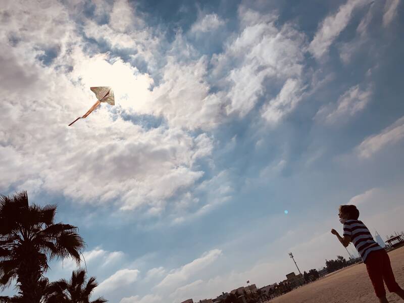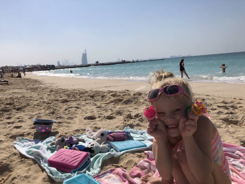 Kite Beach is a very popular beach, especially for kite surfers. It is a public beach with basic facilities, some food stalls, restaurants, and coffee spots. And there is always to beautiful view of the Burj al Arab. It is nice at every moment of the day.