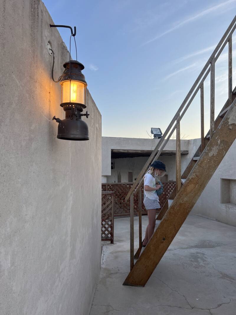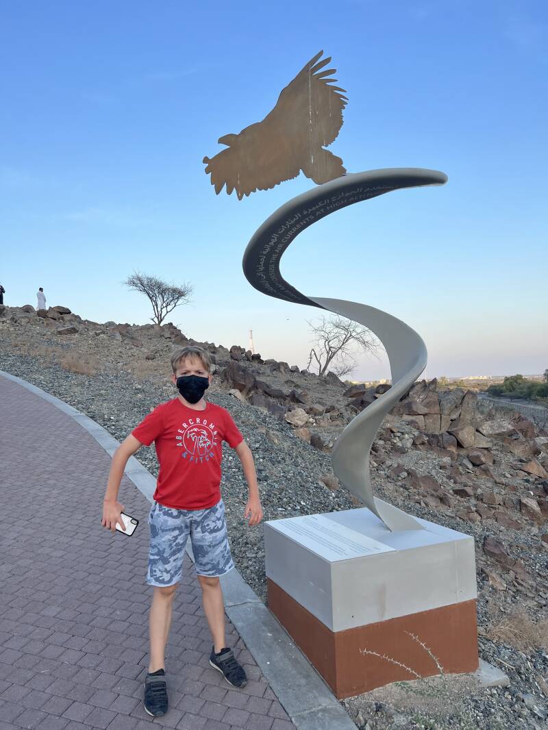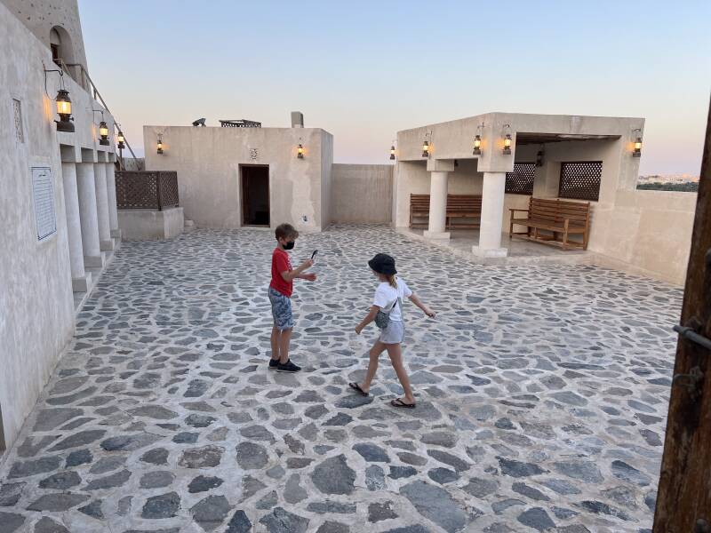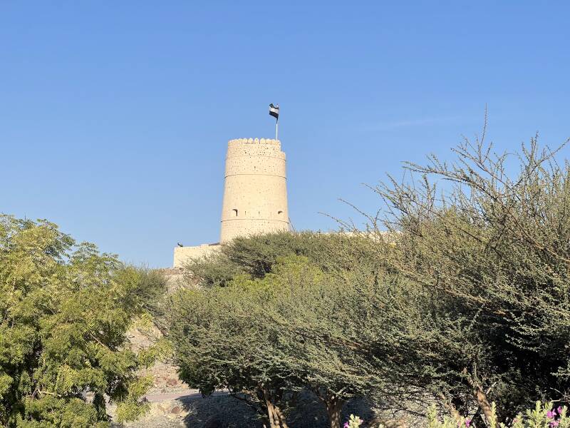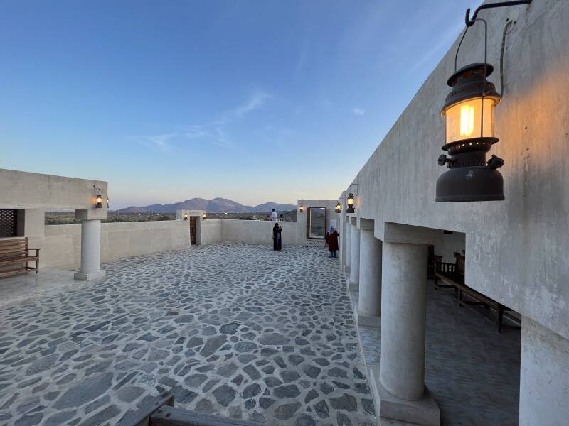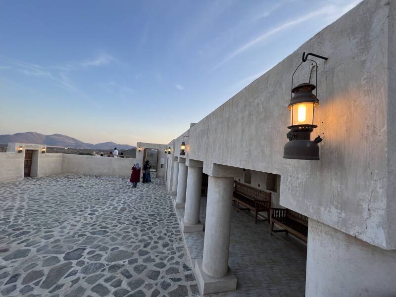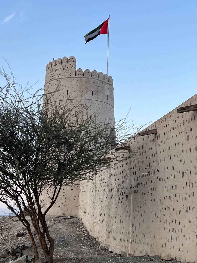 The bird centre is located at the foot of the Al Ghayl Fort, which was built in the beginning of the 19th century. The name of the fort was inspired by the ancient 'Al Falaj' or irrigation channel, because this area is known for these channels and natural springs. We visited the fort after the raptor show, with sunset, which provides this beautiful light.