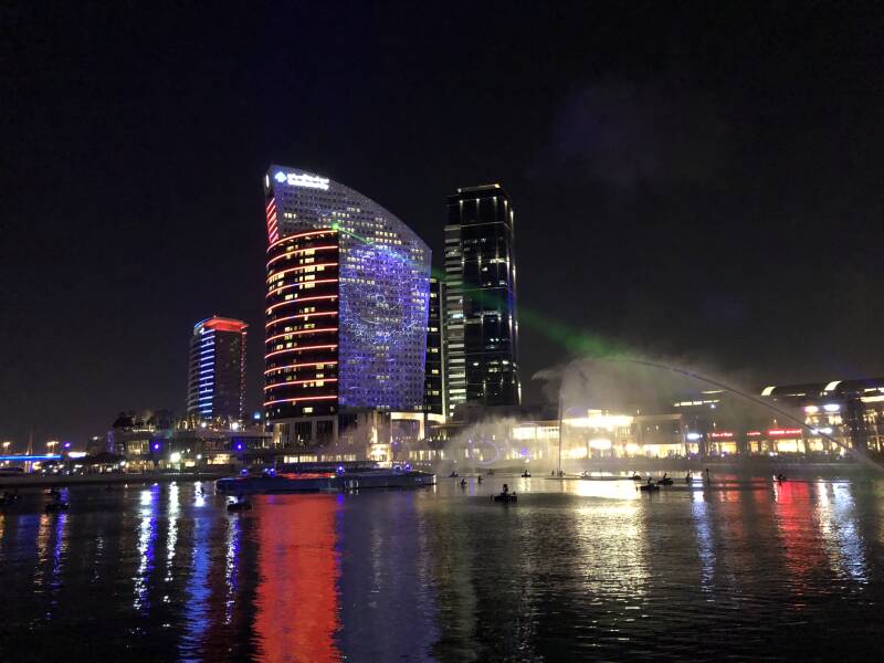 Dubai Festival City is a large residential, business and entertainment development in Dubai, owned by Al-Futtaim Group. The area includes a large shopping mall, a crescent waterfront area, with a water show (fountains), a laser / light show, many restaurants and a big wheel. It is a lovely leisure area and we visited this place many times, also with family and friends. These pics are from January 2018.