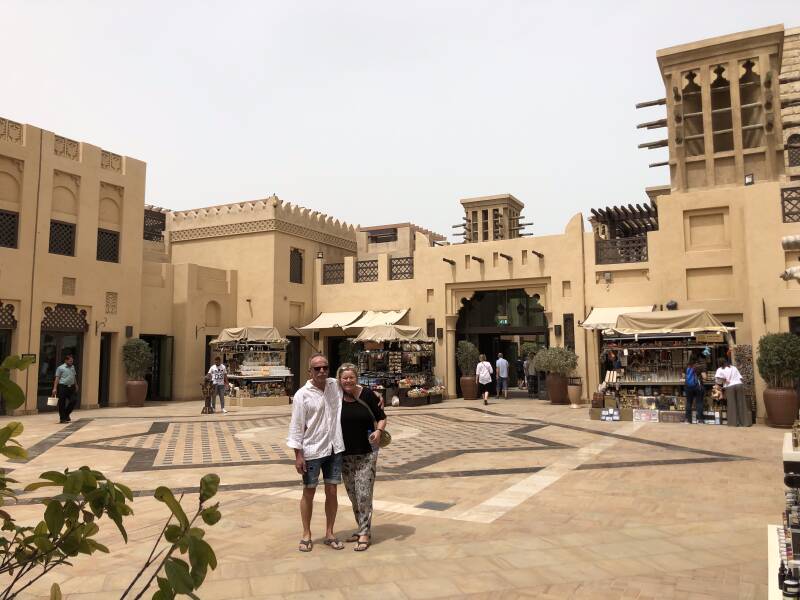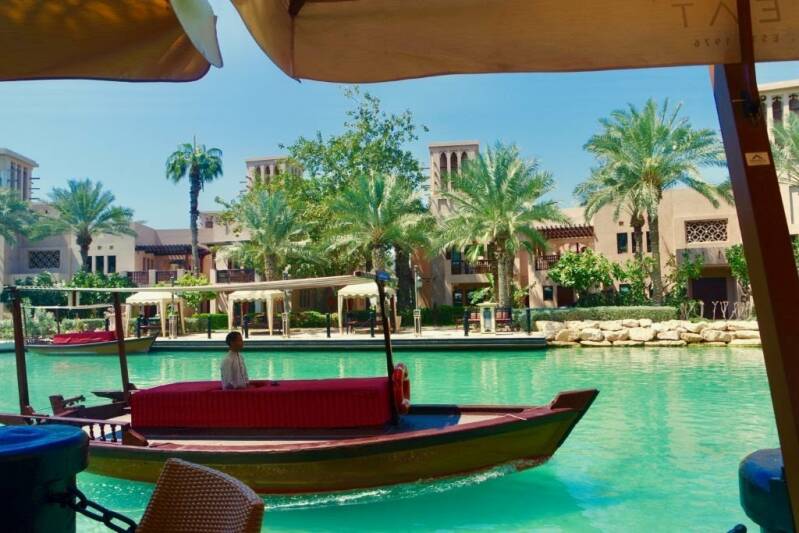 Souk Madinat is an Arabian bazaar, where you can shop, dine, have a coffee, relax or take an abra over an artificial man-made waterway, against the beautiful backdrop of the iconic Burj Al Arab. It openend in 2004. The stalls offer spices, bags, fabrics, souvenirs, slippers, locally made jewelry and much more. The souk is decorated in the old Arabian style with many lanterns and carved wood. It is like you step into the shopping culture of a traditional Middle Eastern marketplace. I went here with my family Corry and Peter, and we had a wonderful lunch in an Italian restaurant.