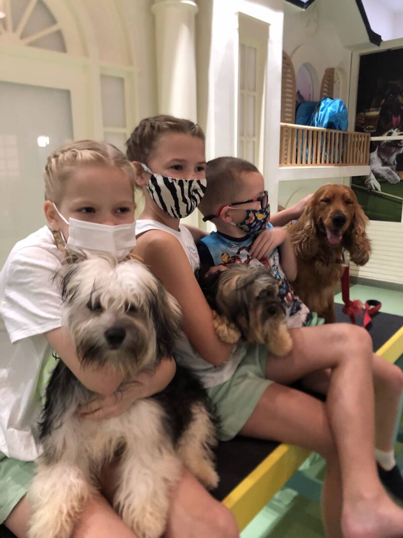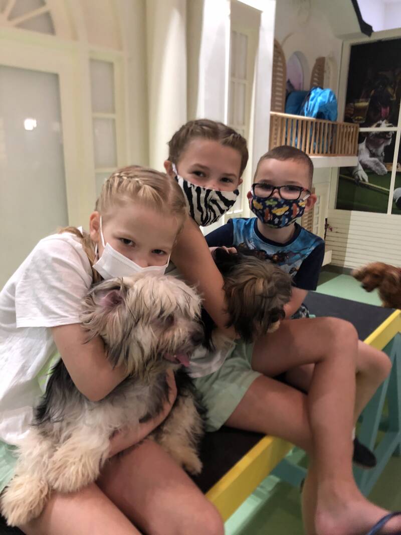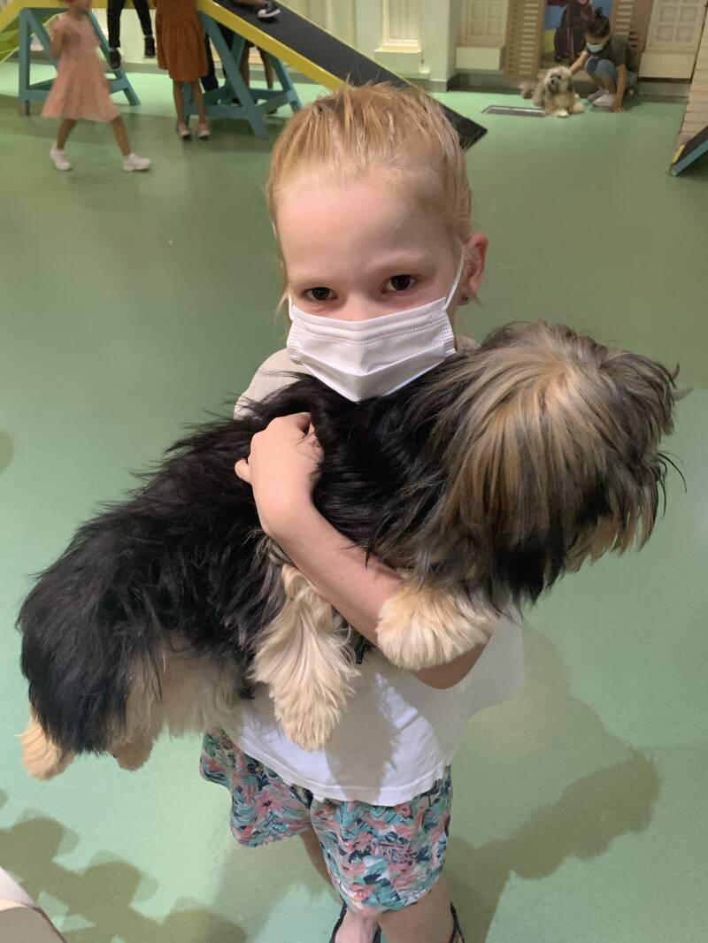 PETME is a new, playful children's concept in Oasis Mall Dubai. And because we don't have pets in Dubai, and the children miss this very much, this is a great solution. They can cuddle and play with dogs and with this, they can hopefully relieve their desire for pets (at least a bit, especially Lieke!). It costs 50 dirhams per half hour (not cheap). They can feed the dogs too (with little treats).