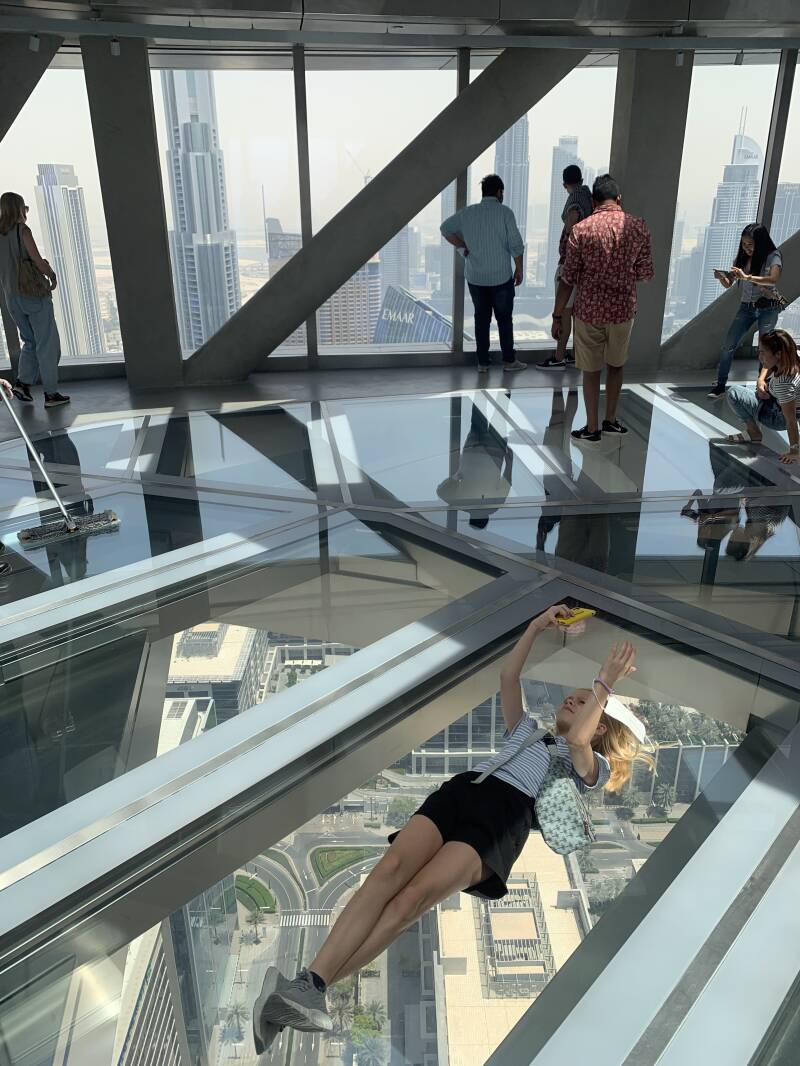 Sky Views opened its doors sometime in 2021 and is a great location for daredevils and insta-lovers, because the 'perfect photo' is certainly guaranteed here. We visited Sky Views several times and we always take our time, because it is actually a 4-in-1 attraction, suitable for the whole family: 1) 25 meter long glass walkway (spectacular), 2) a glass slide that slides out from the 53rd to the 52nd floor (even more spectacular) and 3) enjoy the view of Downtown Dubai from the observatory (instagrammable) and 4) you can also book the 'edge walk', for those who dare; you walk over the edge of the platform at a height of 219.5 meters. We haven't done this (yet) (fear of heights), but our nephew and his girlfriend did and they thought it was fantastic.