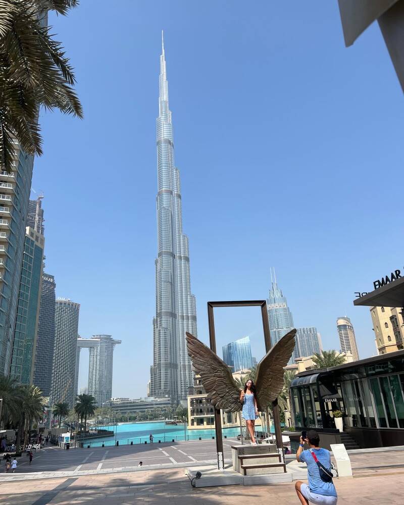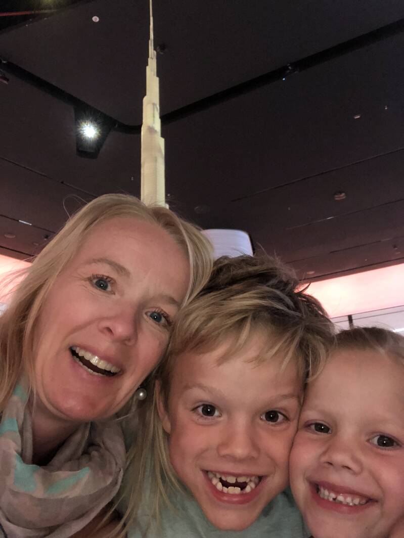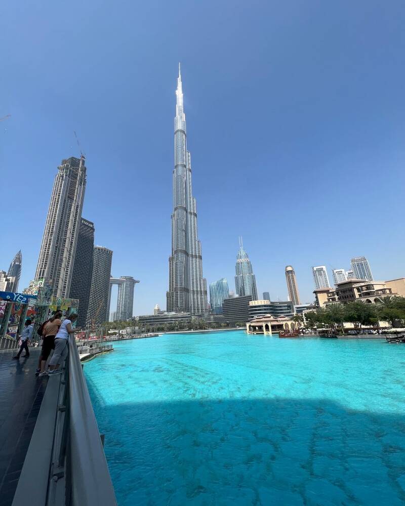 After our visit to the 124th and 125th floor, we went outside (the Dubai Mall) to the central square in front of the Burj, where also the fountains show is, which we saw in the evening (it is on another page on this website). We did an 'instashoot' of all of us with in the background the Burj, which is really hard to get it all in one picture. The Burj and the fountains are top tourist attractions with around 17 million visitors a year.
