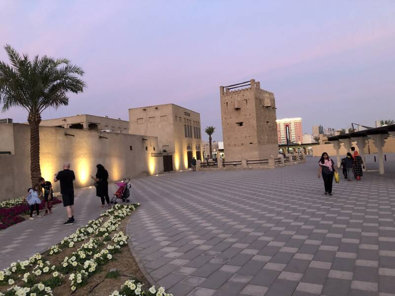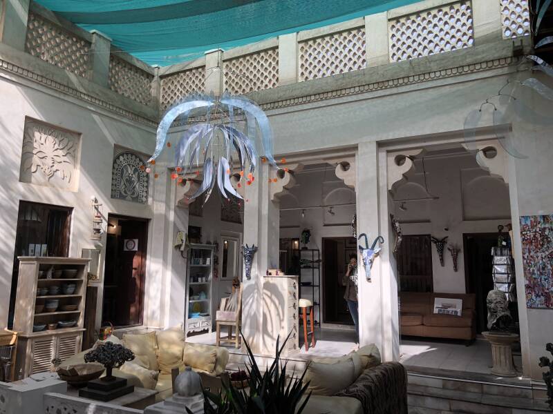 This part, Bur Dubai (Bastakiya district) is the oldest part of Dubai and characterizes itself by the spice, textile and gold souks, the busy Dubai creek full with abra's and watertaxi's and the old settlements of the city. Since oil exports began in 1962, the country's society and economy have been transformed. The UAE has diversified and has become a regional trading and tourism hub. The old historical city is nowadays a popular tourist destination, visited by millions of people every year. We visited the old city many times, it is always a joy to stroll through the narrow streets, old houses, galleries, mosques, the Sh Mohammed Centre for cultural Understanding and to have lunch in one of the traditional tea houses with their lovely courtyards.
