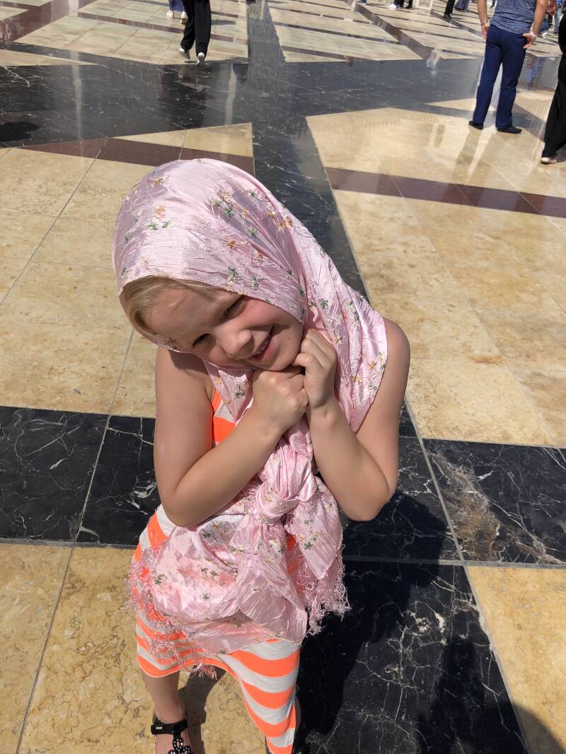 The dress code - Men and boys are not permitted to wear shorts or wear short sleeves and women and girls are required to wear an Abaya (traditional robe) and a Shayla (head scarf). If you don't have these clothes, both can be hired at the main entrance. It is truly a beautiful, serene place.