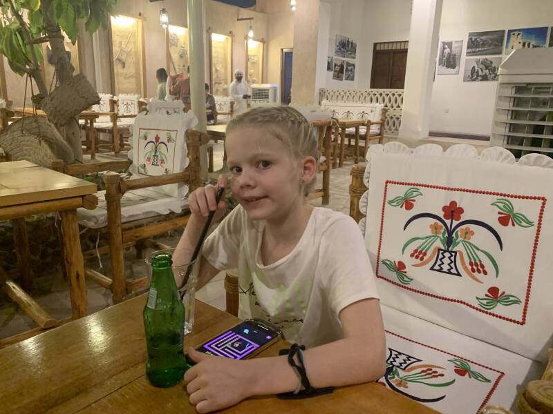We finished the day with a fabulous dinner at Al Khayma Heritage Restaurant, kids had fries and we had traditional bits and bites. After this, we made just a short boat trip on Dubai Creek (as it was very hot). It was a lovely afternoon and evening.