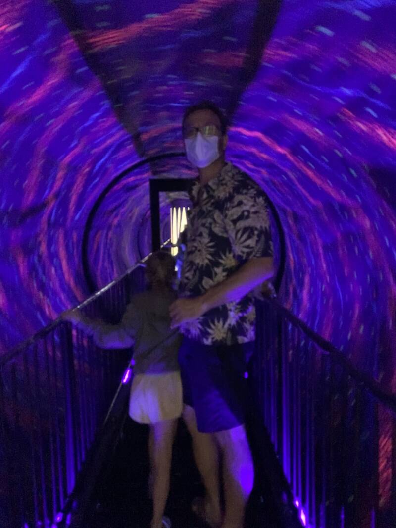 This tunnel makes us believe the ground is shifting under our feet as we have to navigate through a rotating cylinder (and the surface remains stable and flat). Very strange!!