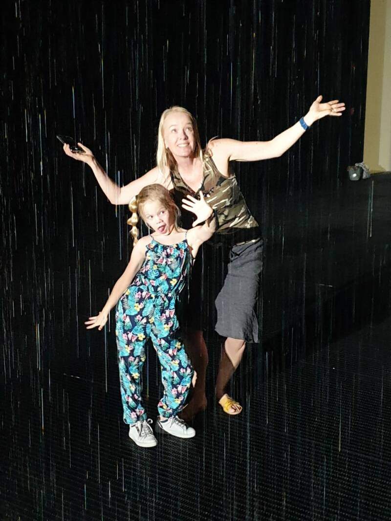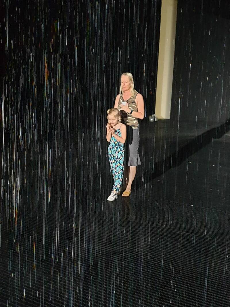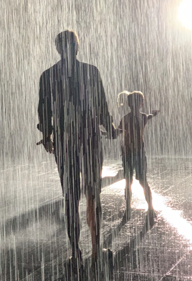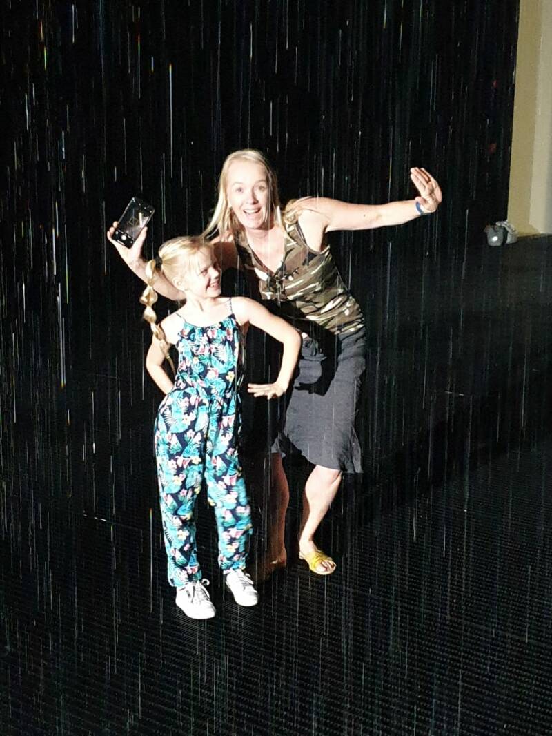 The Sharjah Art foundation - Rain Room (2012) is very special, as you to walk through a downpour of continuous rain without getting wet. How it works? The responsive environment follows you as you navigate through the underground space, preventing the rain from falling directly above any detected human presence. We did this trip with our friends, Gideon, Mascha, Krijn and Nina and it was particular pleasant, as the temperature outside was 40+ degrees. After a while, the children started to run and dance, and they got soaking wet, because the technic only works when you walk slowly. Outside they were dry in 10 minutes ;-). We combined this trip with a lunch at Jones The Grocer on Flag Island Sharjah.