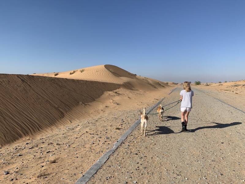 Tot slot kun je ook gaan wandelen met zwerfhonden in het Stray Dogs Center UAQ. We betaalden 150 aed om een ​​uur met drie honden te wandelen. Het geld wordt gebruikt voor hondenvoer, uitrusting, medische behandeling, enz. En de honden krijgen de mogelijkheid om naar buiten te gaan voor een wandeling, dus het werkt twee kanten op.
