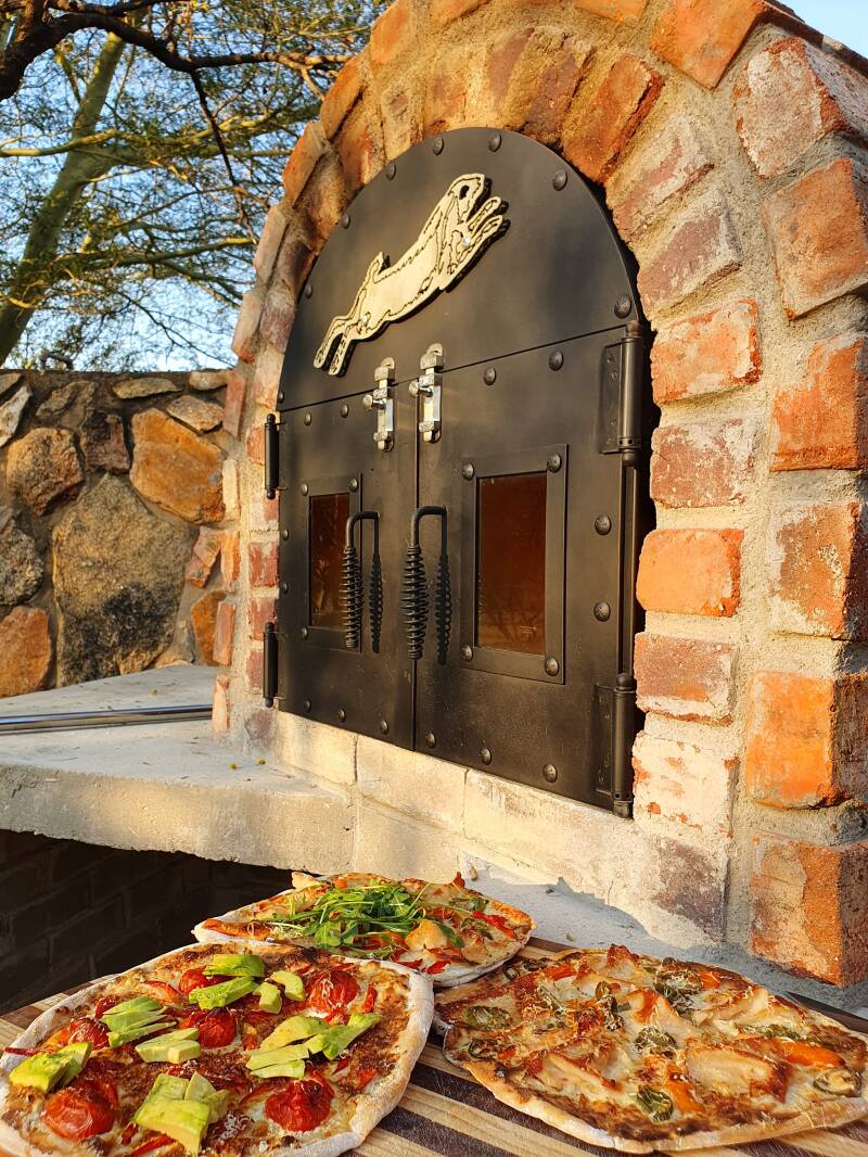 Ondertussen besloten we ook de chalets aan te pakken; ze waren sterk verouderd en hard aan een upgrade toe. We pakten badkamers aan, verfden muren, legden een complete solar installatie aan en bouwden zelfs een extra privé zwembad bij één van de chalets voor een ultieme vakantie-ervaring. Ondertussen begon mijn horeca achtergrond ook weer te kriebelen en al snel was HaseKamp Family Bush Lodge een feit! Ik run de lodge met een heel klein team, dat maakt het zo persoonlijk en toegankelijk. Ik kook zelf voor al mijn gasten en ben er dus ook altijd zelf.
