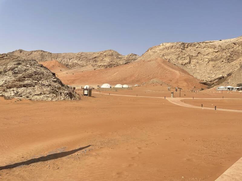Er is tevens een ‘camping on wheels’ gedeelte met rooftop tenten op 4x4 jeeps en VW-buscampers met kitchenette, airco, slaapbank en wifi. Voor gezinnen met kinderen is er een strandcamping met tenten met uitzicht op het water, toegang tot kampvuur- en barbecueplaatsen, gemeenschappelijke sanitaire – en kookvoorzieningen, strandbioscoop, kayakcentrum en diverse sapbars en eetstalletjes. De gehele entourage heeft iets ‘hippieachtigs’. De kampeerervaringen beginnen vanaf 105dhs per nacht (op basis van basic kamperen, zelfvoorzienendheid en gedeelde voorzieningen) tot 2000dhs voor de meest luxe variant. Het is niet goedkoop, maar glamping is nergens goedkoop in de VAE. Het resort gaat nu haar 3e seizoen in en qua bezetting gaat het naar tevredenheid. Ook de reviews zijn goed. Op dit moment heeft het resort volle bak door het internationale bezoek dat voor het WK in Qatar komt.
