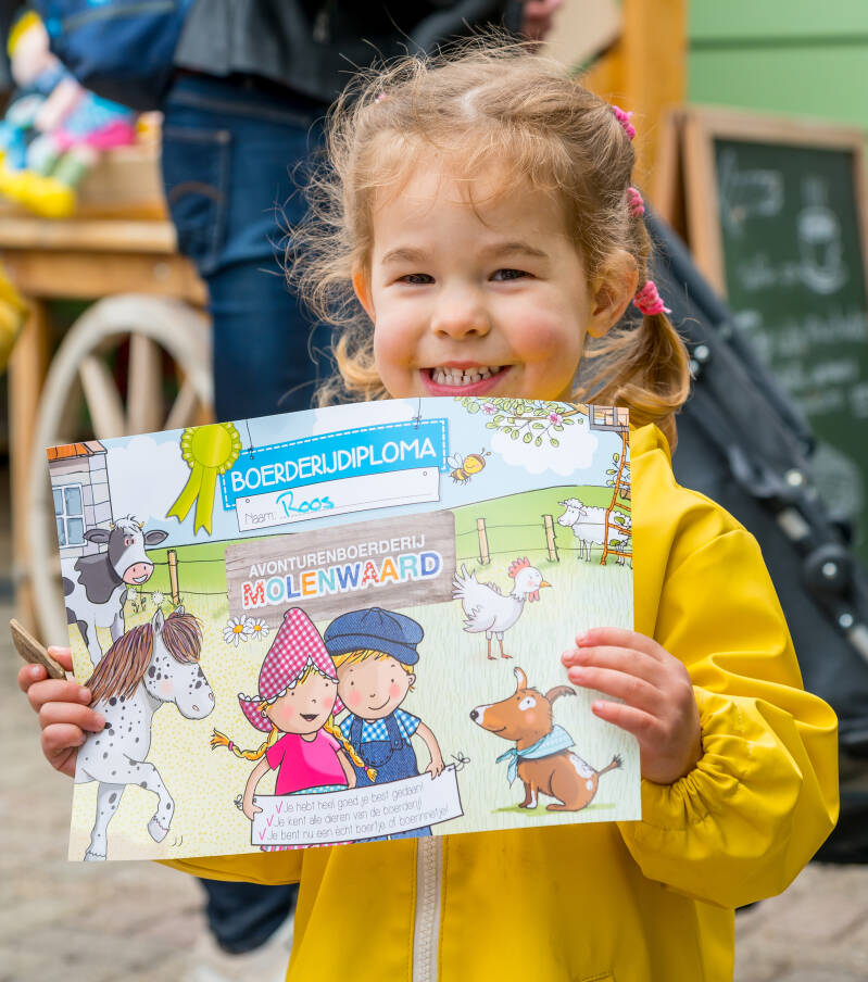 Avonturenboerderij Molenwaard is een 9-hectare groot themapark met ruim 40 attracties, gericht op natuur- en boerderijeducatie, diverse horecafaciliteiten, winkels en entertainment in de vorm van live theater en shows. Daarnaast ligt 10 minuten verderop Vakantiepark Molenwaard, een kleinschalig, gethematiseerd park met unieke 2-4-6-8-10-16-18-persoons accommodaties zoals een schaapskooitje, een boerderijtje, polderlodge, hooischuur en hooimijt. De rode draad van de beide parken is ‘het boerderijleven’. Het boerinnetje en boertje, Fien en Teun, nemen je mee en laten je op een kneuterige manier hun boerderijleven zien en ervaren. “We willen het eerlijke verhaal vertellen over eten en drinken en dat past helemaal in deze tijdsgeest. Hoe wordt ons voedsel geproduceerd, waar ligt de oorsprong? De characters versterken dit verhaal, maar ook onze boeken, TV-serie, parkshows, etc.”