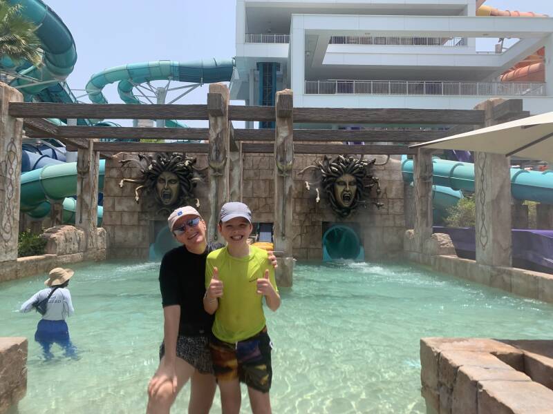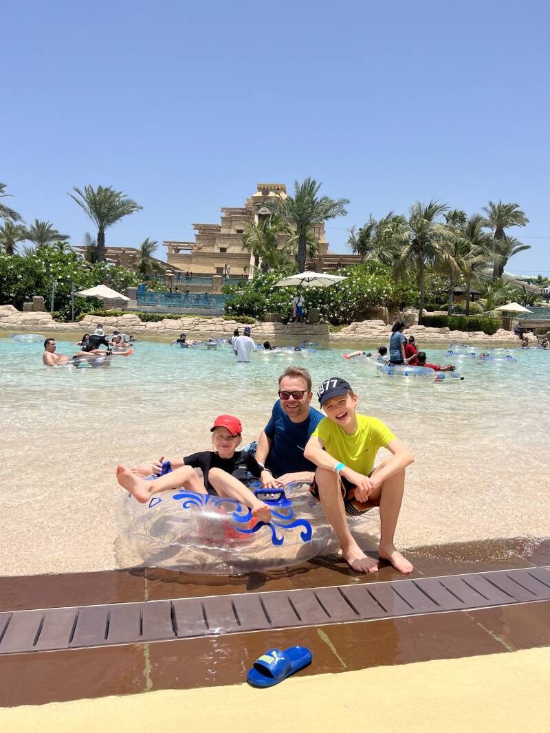 During one year of our expat life in Dubai, we had an annual to Aquaventure Atlantis, so we had the opportunity to visit the park very often. The park is spacious, surrounded by the famous Atlantis hotel and the new Royal Atlantis on Palm Jumairah, and is lush and fancy. Aquaventure is the world's largest water park with more than 105 slides, attractions and experiences. Spanning 22.5 acres, it features three action-packed towers, multiple splash areas, more than 1.2 miles of River Rapids and 0.6 miles of private beach. The Lost Chambers Aquarium is included in the ticket and located between the many shops and restaurants of Atlantis Mall (which is also the entrance to Aquaventure) is also worth a visit.