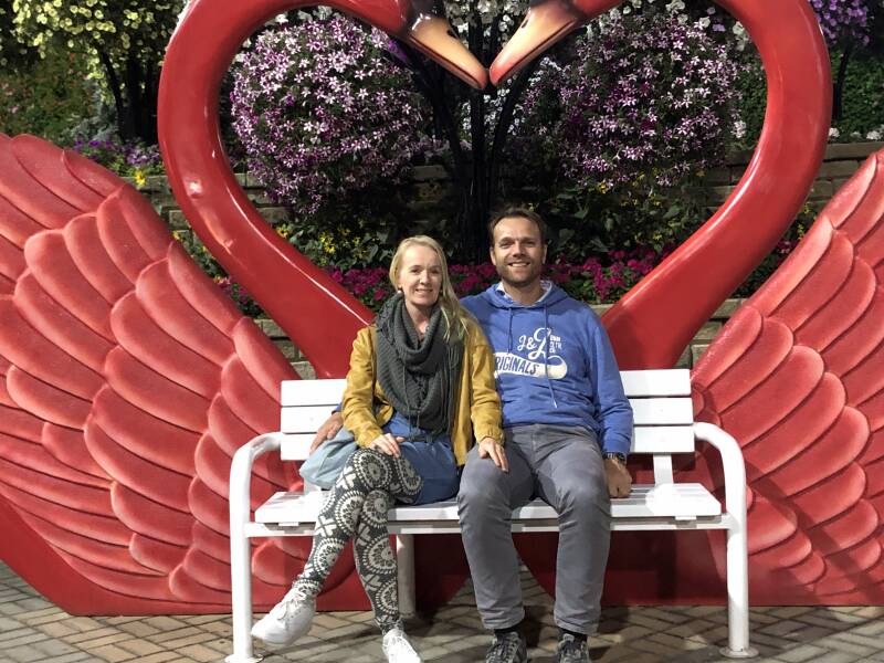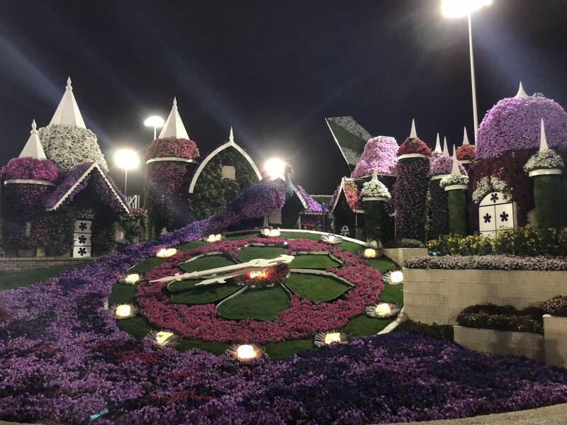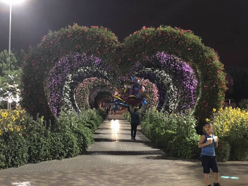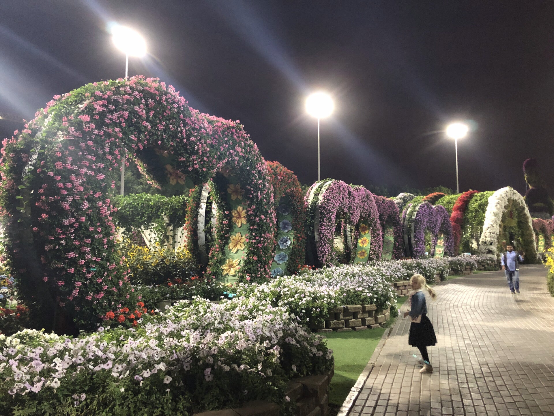 In wintertime, we visited the lush surroundings of Dubai Miracle Garden, where we walked through colorful flower gardens. Beautiful flower sculptures have been made, we were amazed. All kinds of nice seats invite you to sit down and relax for a while. We went off season and it was wonderfully quiet.