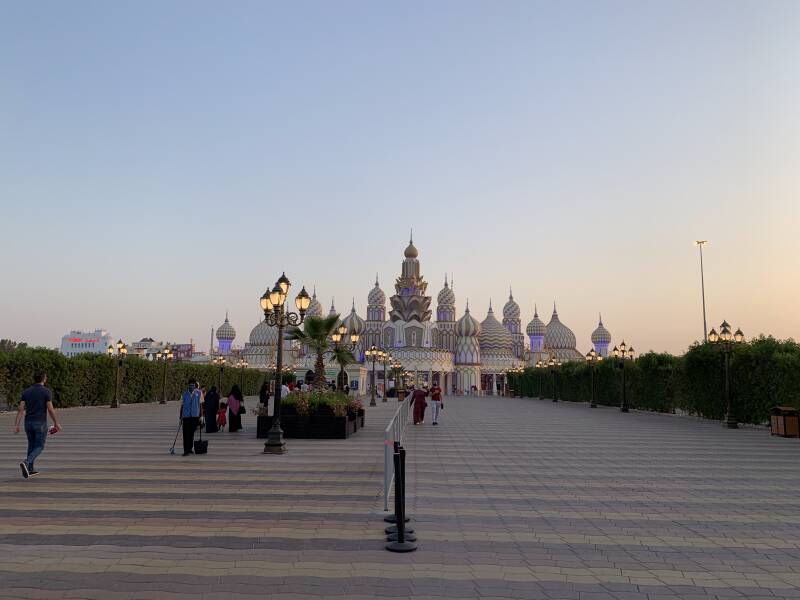 Arrived at the 27 country pavilions. Here you can shop endlessly (+/- 3,500 stalls) for nice, local gadgets such as oriental herbs or a Persian carpet. It gives us the "street bazaar" feeling, partly due to the delicious smells that are spread from the local food stalls. The largest pavilion in Global Village is the India one with more than 300 stalls. “Global Village celebrate the various cultures” is the mission statement. Global Village tributes to Dubai with its international immigrant and expat culture, of which the India population is the largest in Dubai.
