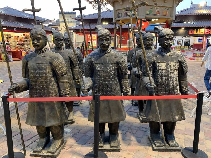 The entrence: via a kind of "world square" (with a miniature of the Burj Khalifa, the Eiffel Tower and the statue of liberty of NY), you walk through a street to the starting point of the country pavilions.