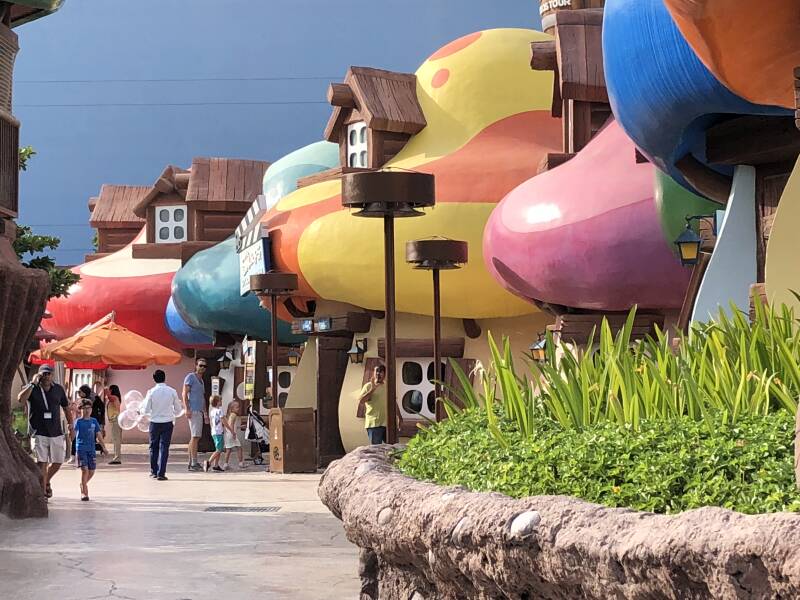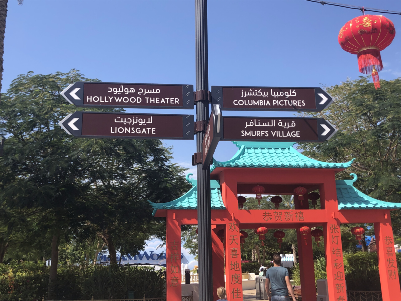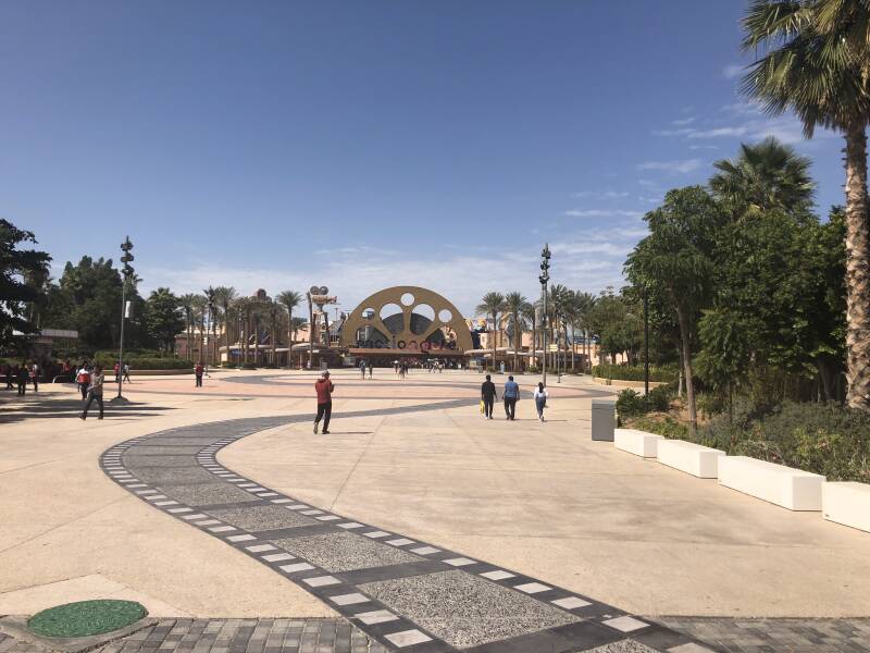 Via Riverland, we walk to Motiongate. It is quite a long walk (or ride by golf cart). The landmark of Motiongate - half a film reel, which also functions as the entrance to the park - can be seen from far. It brings us directly into the atmosphere of the park, which is based on the fantasy world of the famous comic book heroes from Hollywood movies, among others, the smurfs, Kung Fu Panda and Shrek.