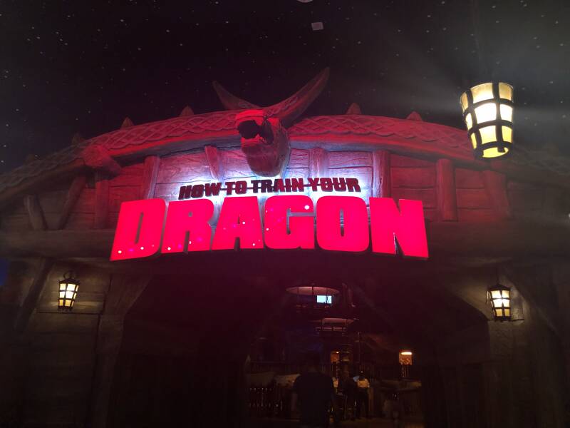 There is a queue for the Dragon Gliders, but it is absolutely worth to wait. Suspended from a monorail, we soar high above the Viking Village and pass through caves and over a haunted Forbidden Island. What a beautiful ride!