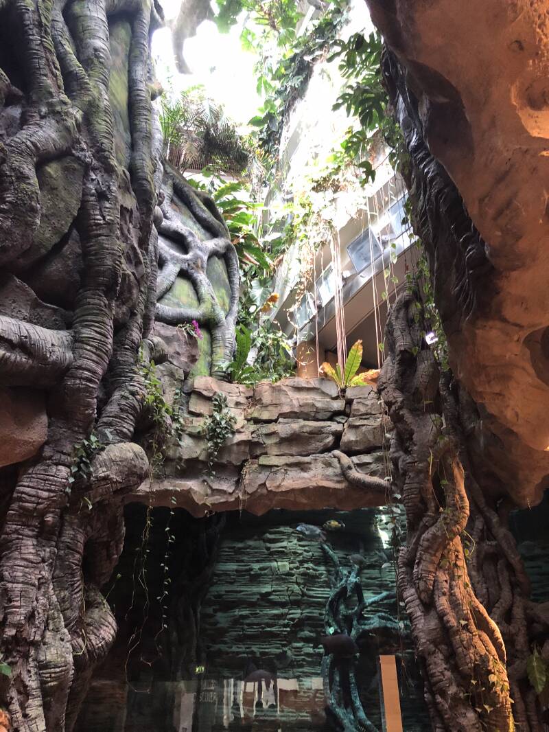 Lushness greets us, when we walked into The Green Planet. The 'planet' is built in a bio-dome in which a tropical forest has been created. It houses over 3,000 plants and animals, and even has a waterfall. In the middle of the dome is a giant tree, though artificial man-made but life-sustaining. Very cool done. A spiral walkway has been constructed around this tree, over which we descended from the upper floor to the ground floor, discovering four levels of the forest along the way.