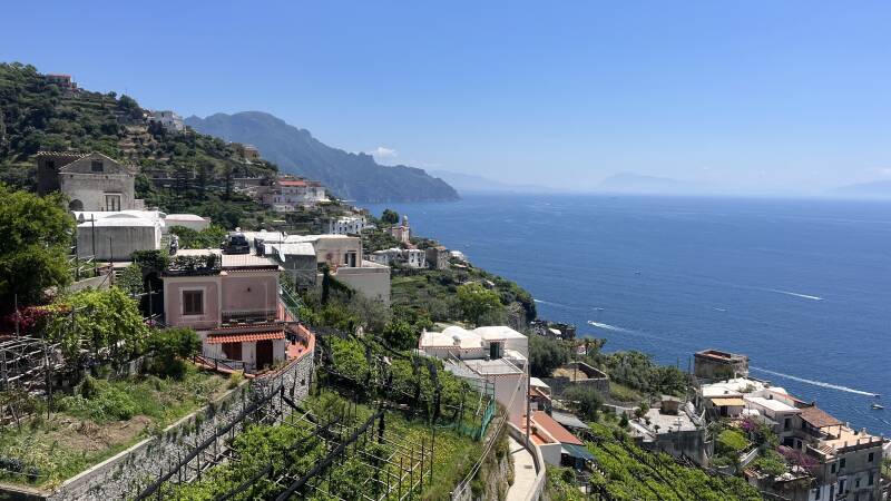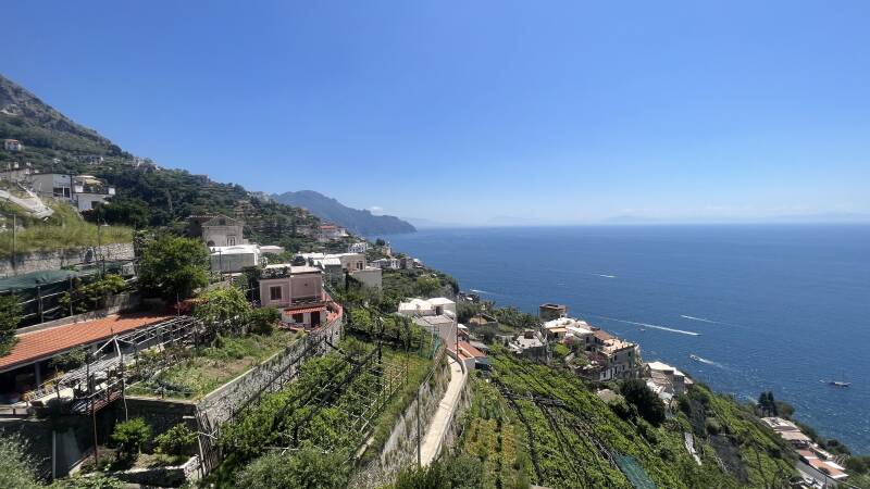 The coastal road between the port city of Salerno and clifftop Sorrento winds past grand villas, terraced vineyards and cliffside lemon groves.