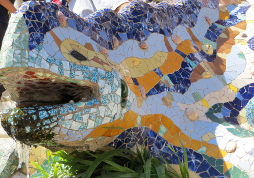 First, we went to Parc Guëll, one of Gaudi’s masterpieces where the steps are leading you up. Situated in the Gràcia district of the city, the park was created between 1900 and 1914 and officially opened to the public in 1926. The park was listed as a UNESCO World Heritage Site in 1984 and attracts many tourists to admire the work that Gaudi created. First we went to Parc Guëll, one of Gaudi's masterpieces where the colorful stairs lead you up. The park was constructed between 1900 and 1914 and officially opened in 1926. The park was declared a UNESCO World Heritage Site in 1984 and attracts many tourists to admire the work that Gaudi created. It is a beautiful place and we spent some time here enjoying some drinks and snacks. The park is a true voyage of discovery for children because they keep finding new mosaics.