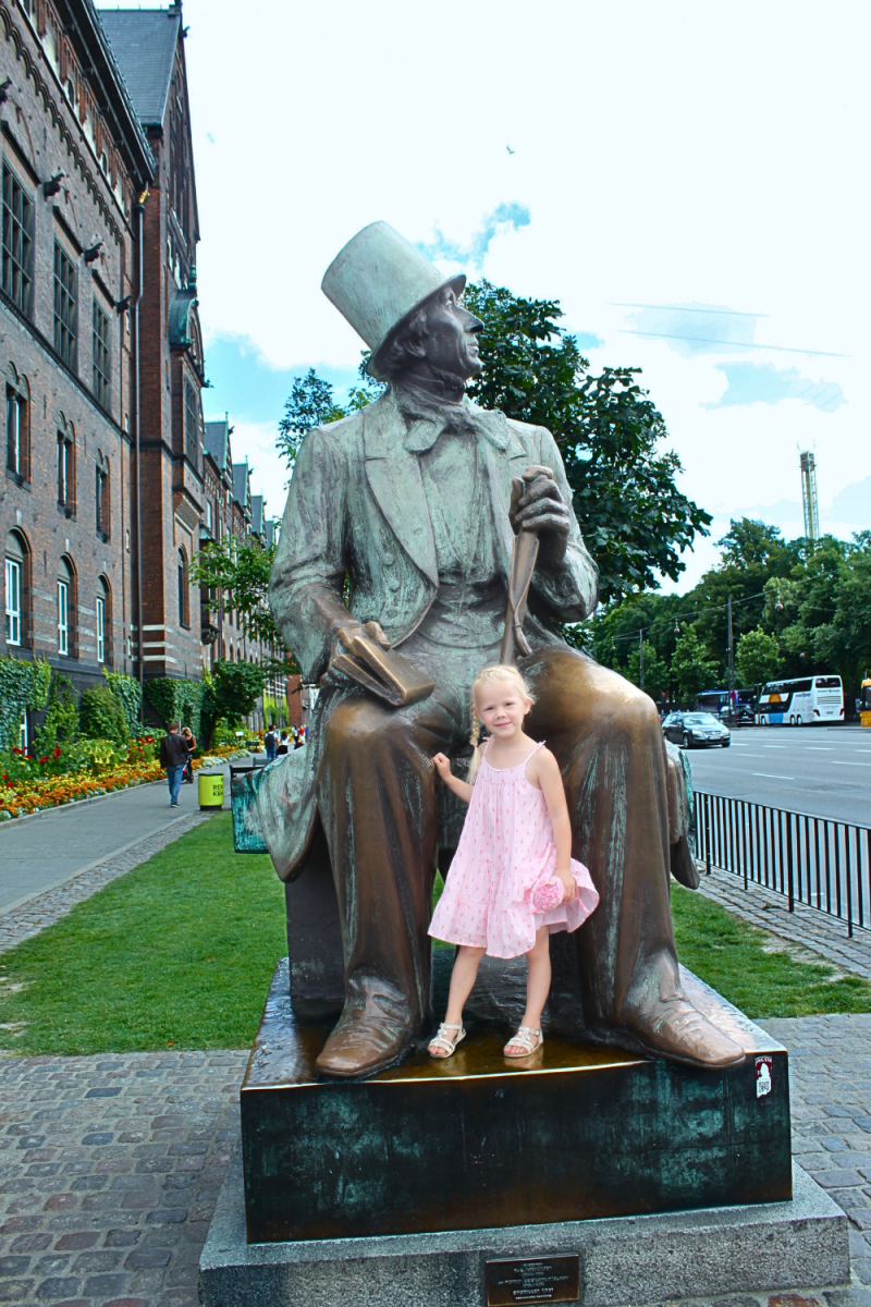 The statue of author Hans Christian Andersen; he is a very important part of Danish culture, and his fairytales are known worldwide.