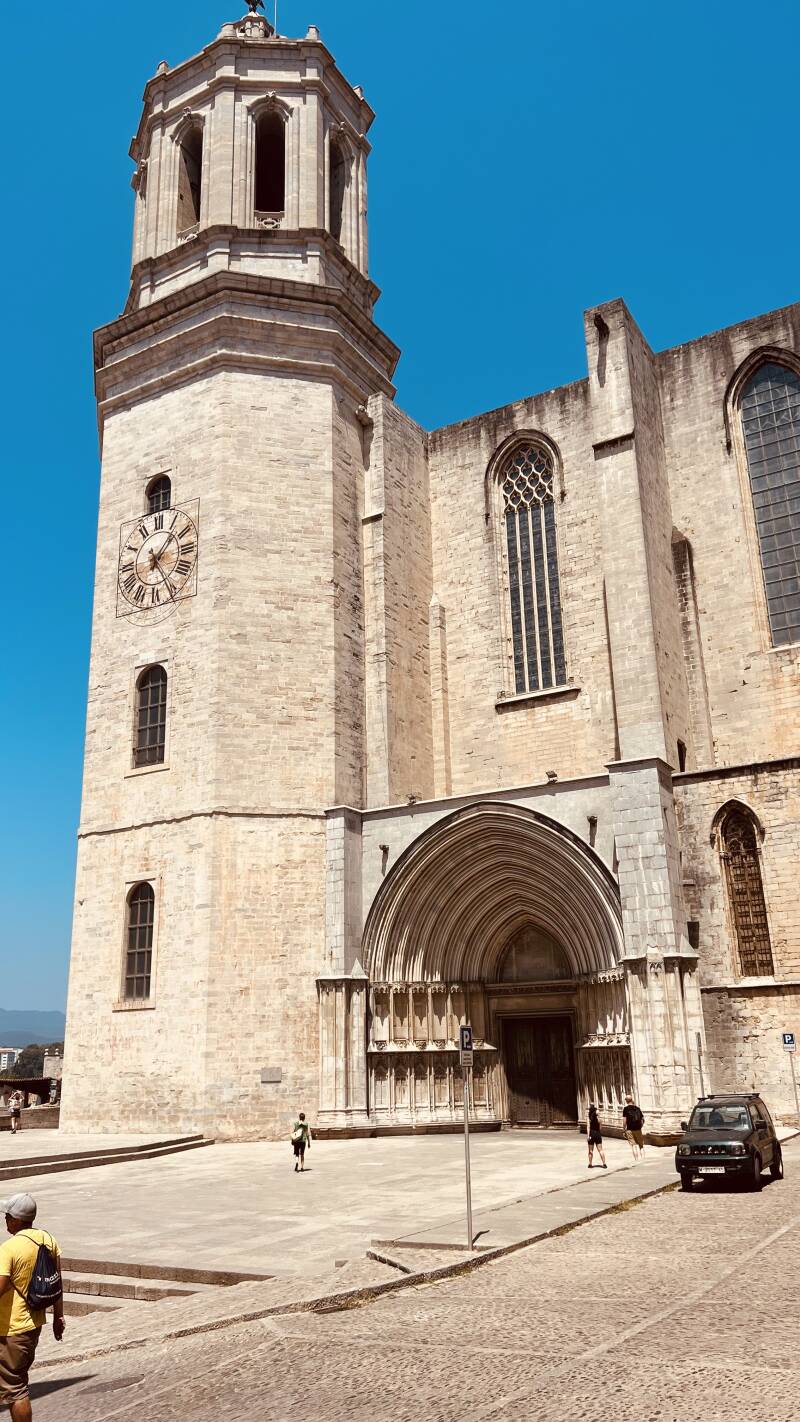 Our first stop: the Girona Cathedral. This impressive cathedral features a mix of Romanesque and Gothic styles. The construction of the Cathedral began in the 11th century, specifically in 1020, and it was completed in the 18th century. The building has undergone several renovations and expansions over the years, with significant work being done in the Gothic style during the 14th and 15th centuries. Its grand staircase and the wide nave (the widest in the world) are must-sees. The views from the top are spectacular.