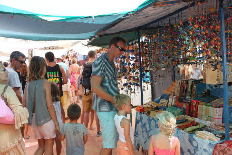 Nowadays, this market has grown into a festival with more than 200 stalls, spread over several levels. They are all gathered in a special courtyard, surrounded by the leaves of the vine plant. On the most popular days of the year, as many as 20,000 visitors come to this market. Besides the stalls, there is live music, many food and drinks stalls, massage tents and activities foor children. Our children also loved the hippie market, we gave them some pocket money so they could buy a little souvenir from Ibiza.
