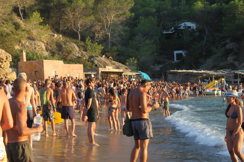 Benirras is the nice secluded beach in the north of Ibiza where mainly hippies and local islanders come together to enjoy the sunset, especially on Sundays. Local drummers and artists performed on the beach as the breathtaking sunset sets behind the islet Es Cap Bernat. It was very busy when we were there, but it was a magical experience. We had our own picnic blanket with drinks and snacks, enjoyed the sunset and danced together until the sun had completely sunk into the sea.