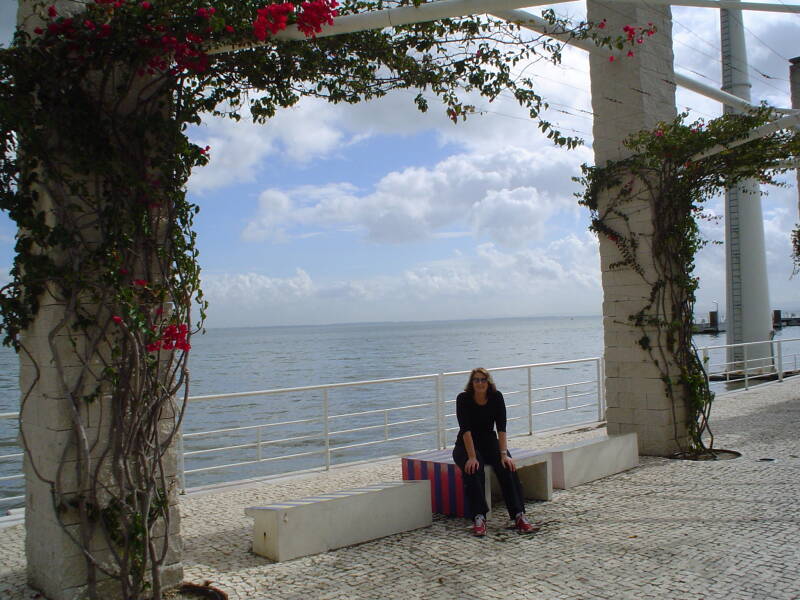 After our visit to the monastery, we had lunch and walked further to the 'The Ponte de 25 de Abril' (1966), which completely spans the Tagus, is a 'look-alike' of the Golden Gate Bridge in San Francisco. The bridge connects Lisbon with the bustling suburb of Almada and serves as a symbol of Portugal's transition to democracy. Very special is the 'Christ the King' statue in the background (on the other side of the bridge in the Almada district), which is a 'look-alike' of the Christ statue in Rio de Jainero. Here, along the banks of the Tagus, we sat for a while and enjoyed the beautiful view.