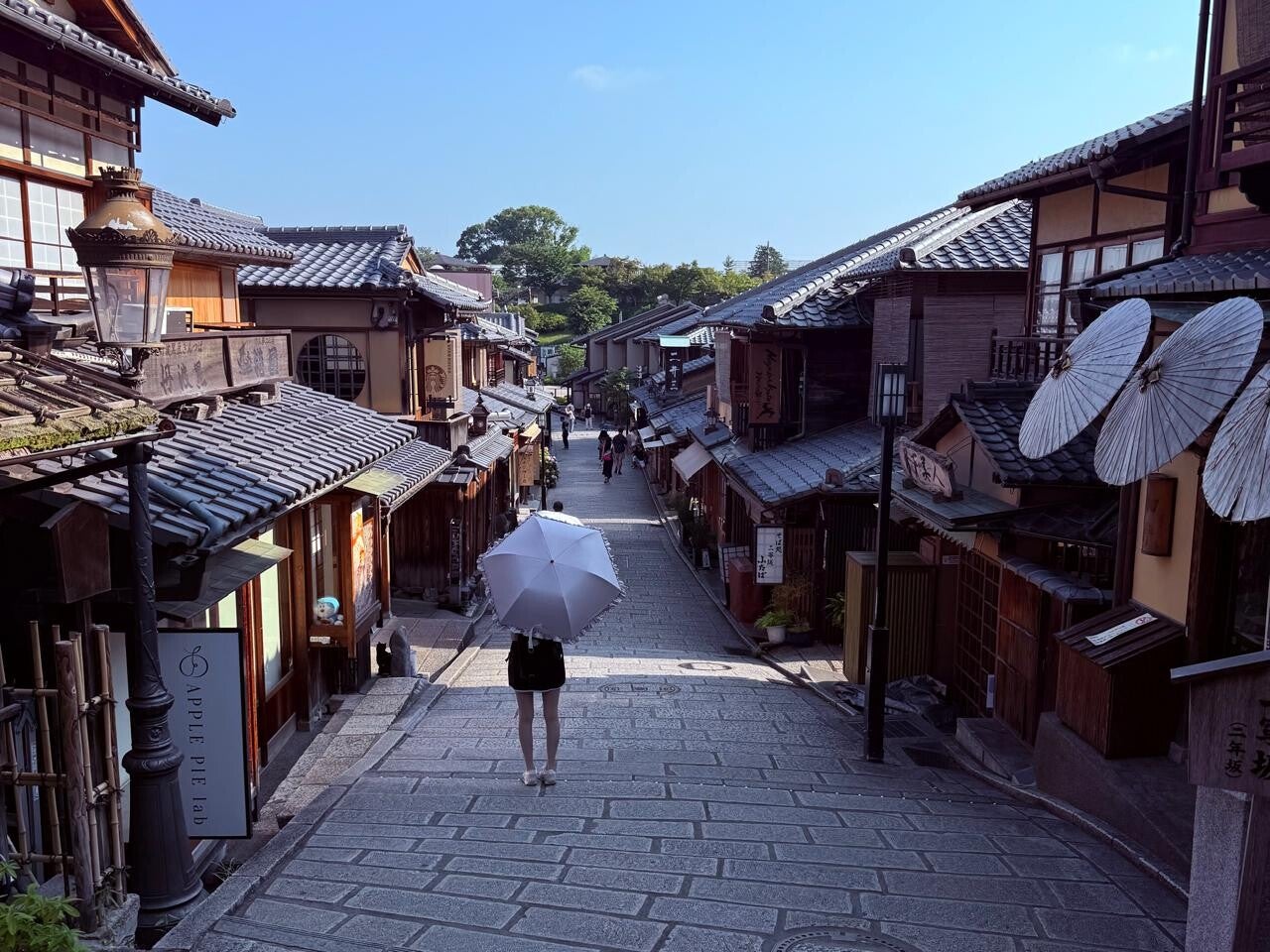 From there, we continued on to Ninenzaka, a charming sloping lane lined with traditional shops, cozy tea houses, and souvenir stalls. Our walk carried us further up to Sannenzaka—another picturesque alleyway, even more atmospheric, with a steeper incline and sweeping views over the city and nearby temples.