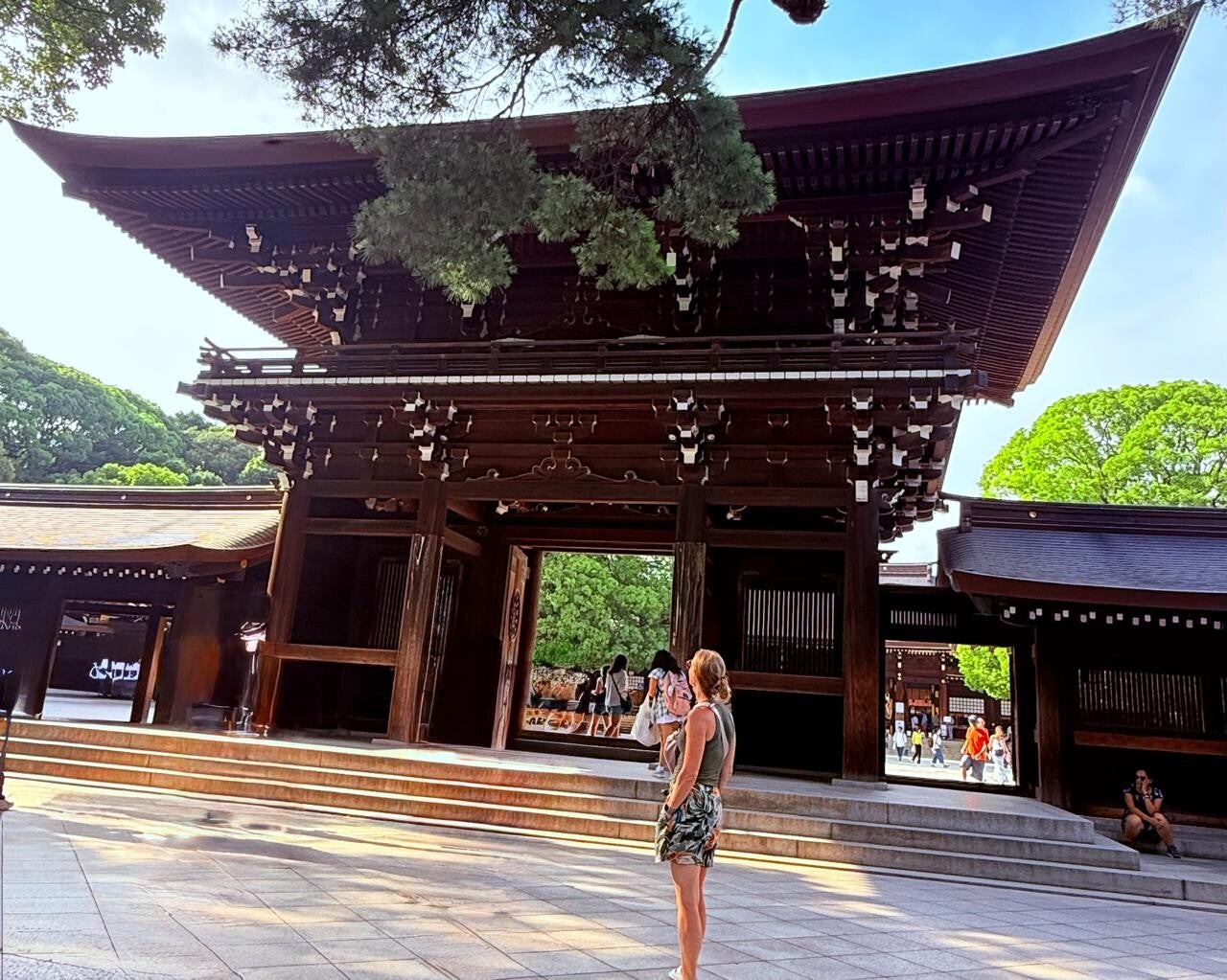Next, we stepped into the peaceful world of Meiji Jingu, a Shinto shrine tucked inside a lush forest and dedicated to Emperor Meiji and Empress Shoken. The calm paths and spiritual atmosphere made it the perfect spot for a quiet stroll and a glimpse into Japan’s deep-rooted traditions.