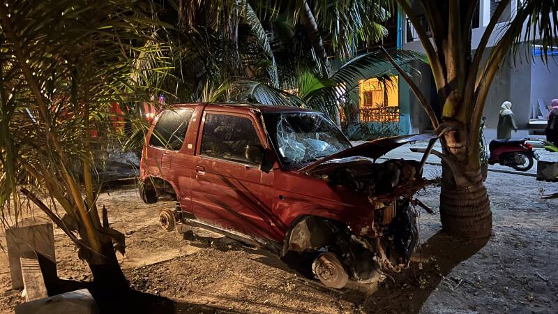At dawn we take a walk on the island. We stroll through the sandy streets and see the 'local side' of the Maldives, shabby houses, rubbish on the streets, beaches with stranded boats and lots of plastic. We also walk past Maafushi Prison, the largest prison in the Maldives, where numerous political prisoners are held.