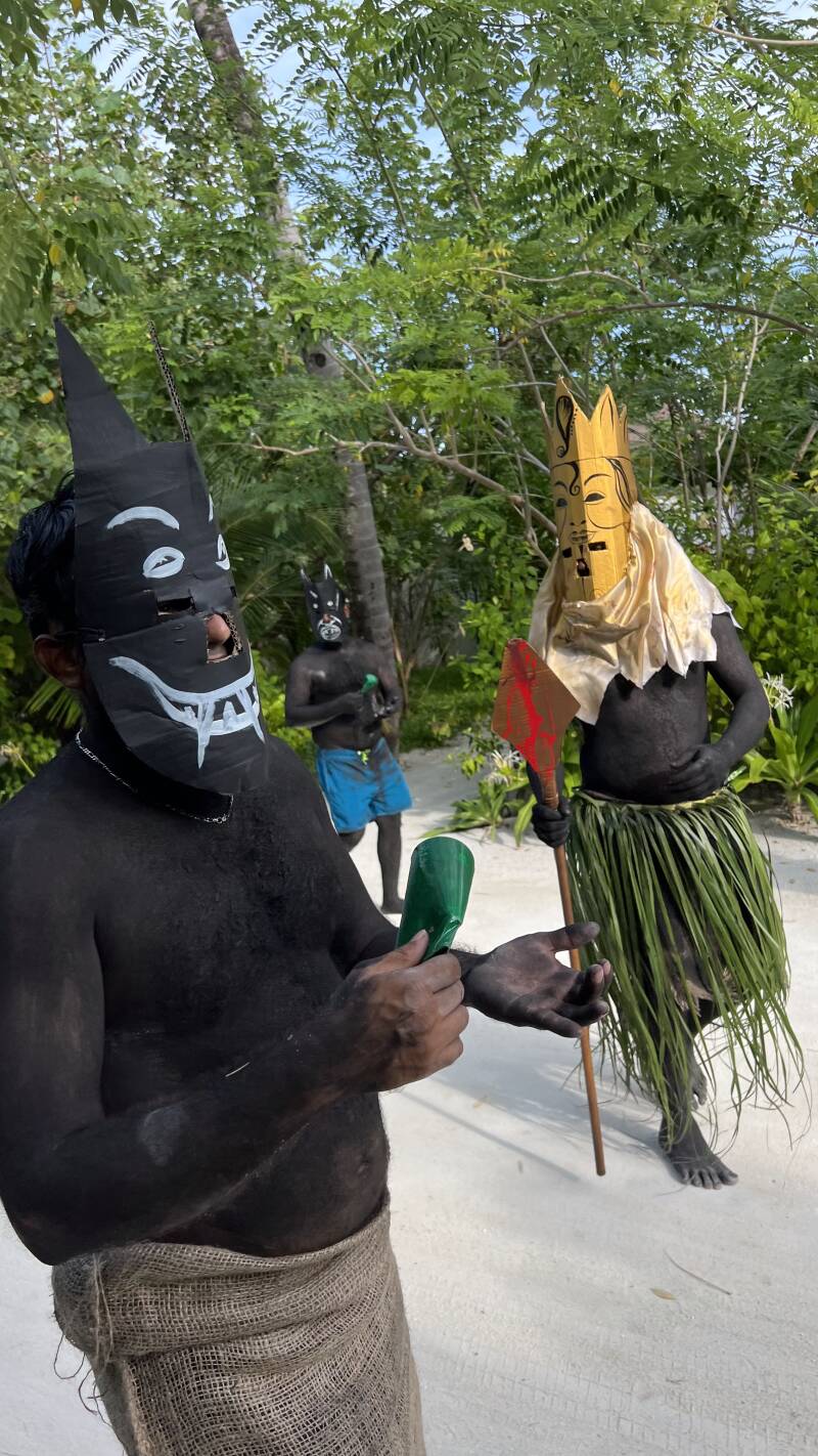 After breakfast we go to 'bikini beach', where the ladies can swim in bikinis. We book a donut boat for 30USD and we go snorkeling at the 'house reef'. We eat and drink in the local tents. Since it is EID, there are also all kinds of folkloric activities on the island, such as a musical parade with men dressed as mythical red sea monsters, Rannemaari. Impressive!