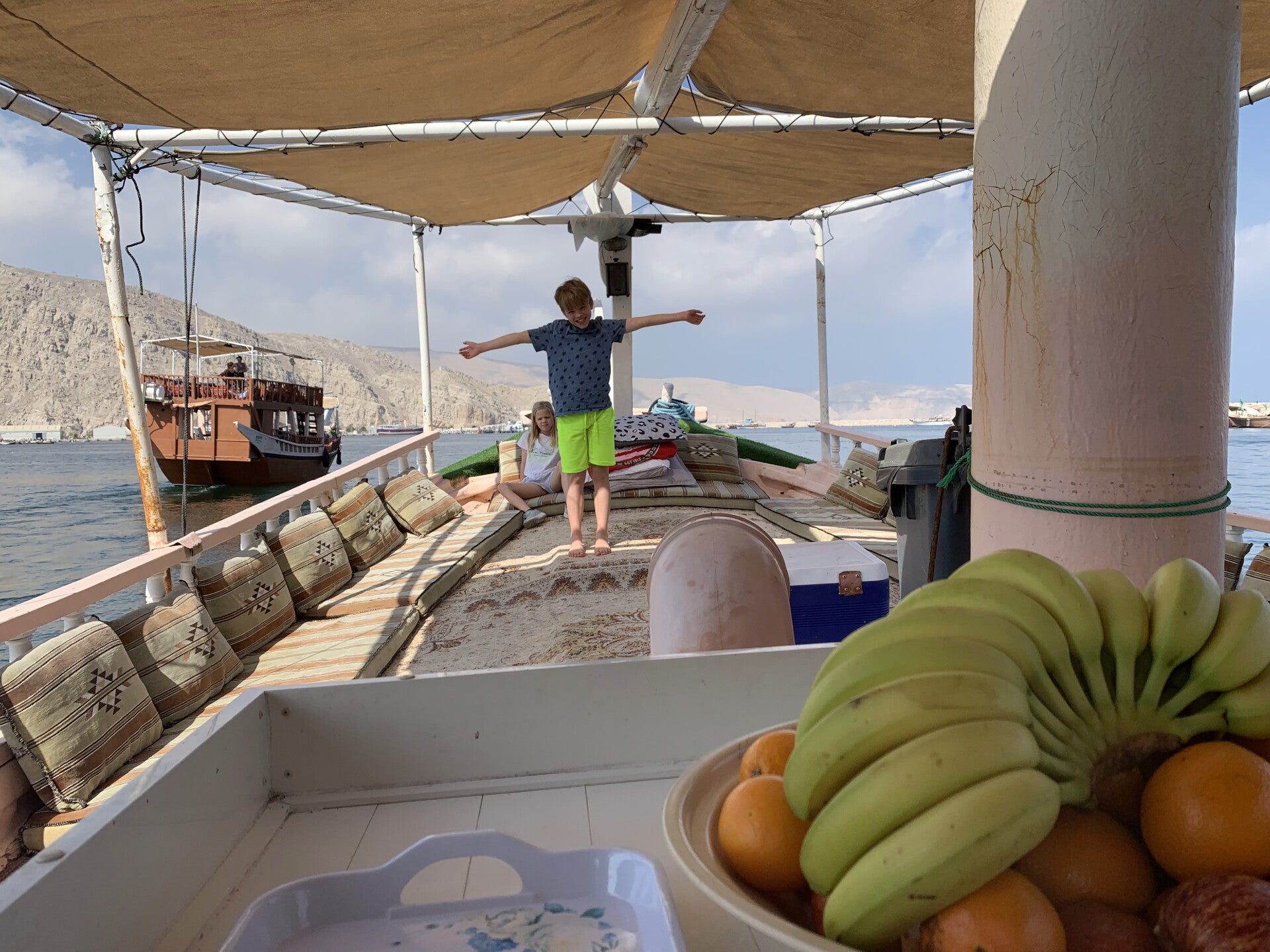 We boarded our dhow in Khasab, and the cruise ran from 10:00 a.m. until 9:00 a.m. the following morning.