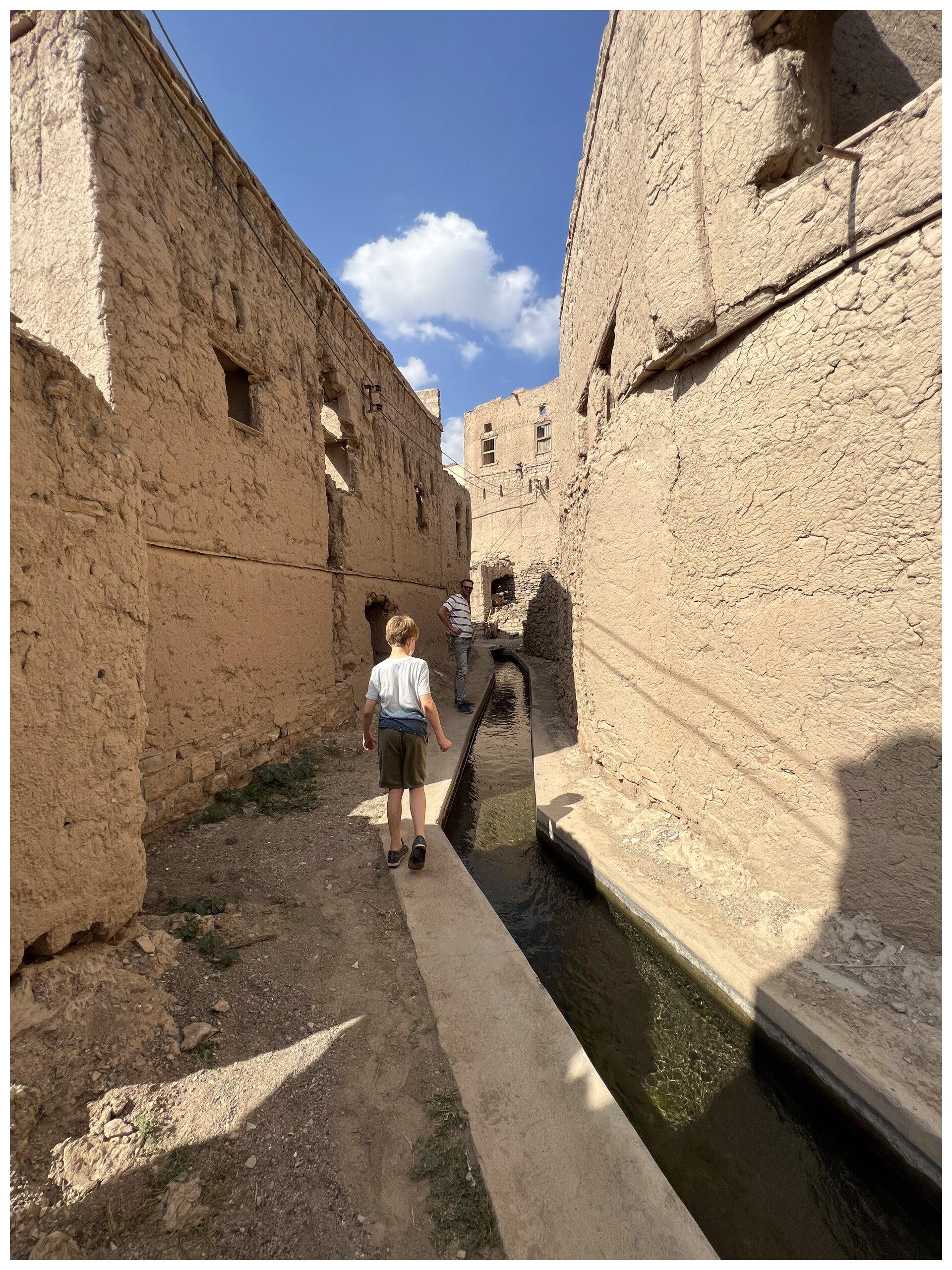 That brings us to the irrigation system, which we came across while walking. This traditional falaj irrigation system seems to be over 2,000 years old.It is a brilliant irrigation network that made it possible to cultivate the steep slopes, turning the area into fertile agricultural terraces.